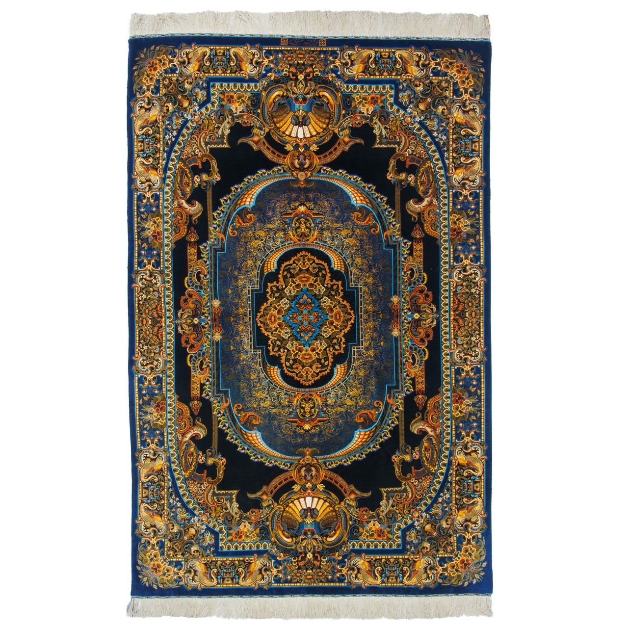 فرش دستباف طرح لچک ترنج تمام ابریشم قم 135 × 208 کد 10200440