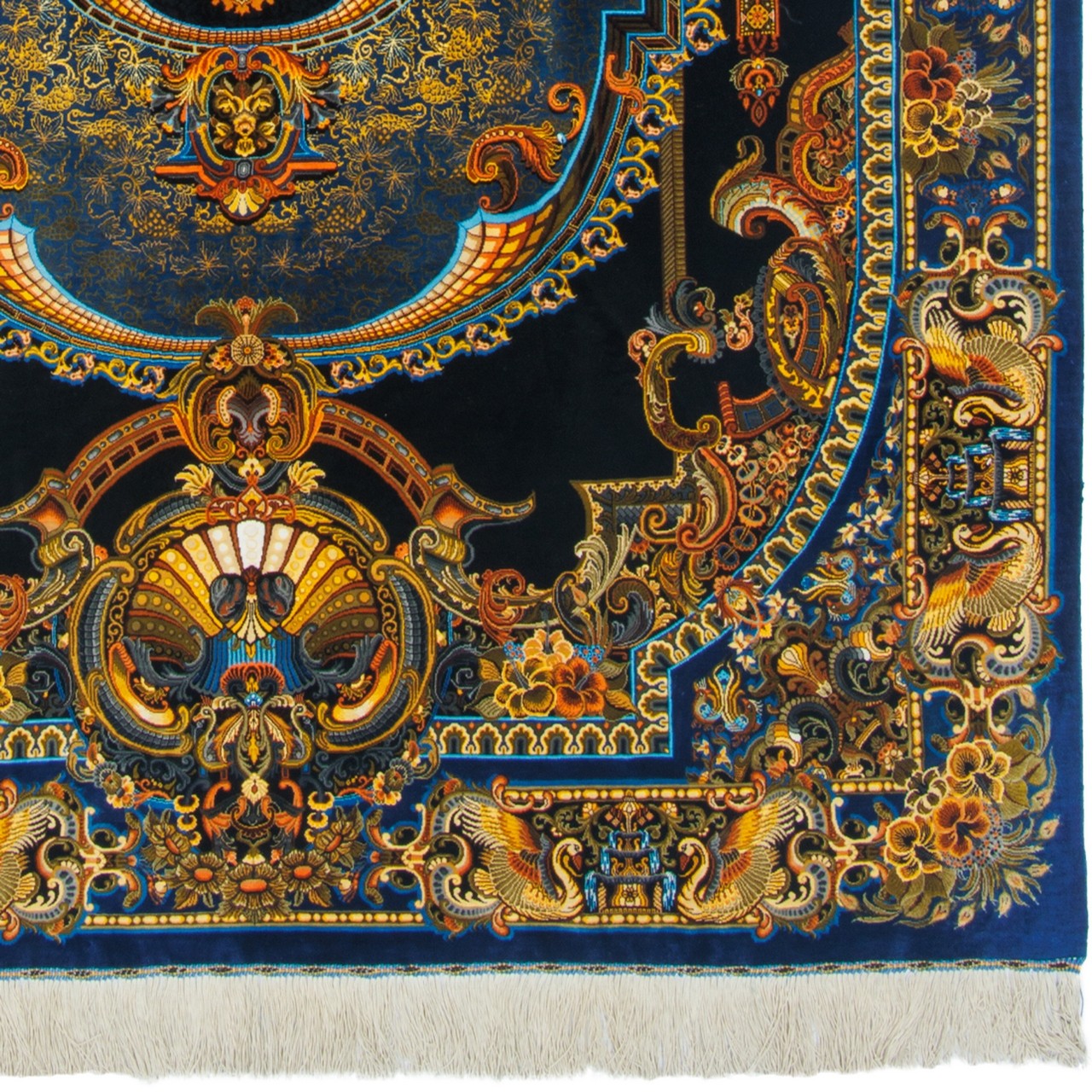 Handwoven Carpet, Corner Medallion Layout, All Silk, Qom, 135 × 208 cm Ref 10200440