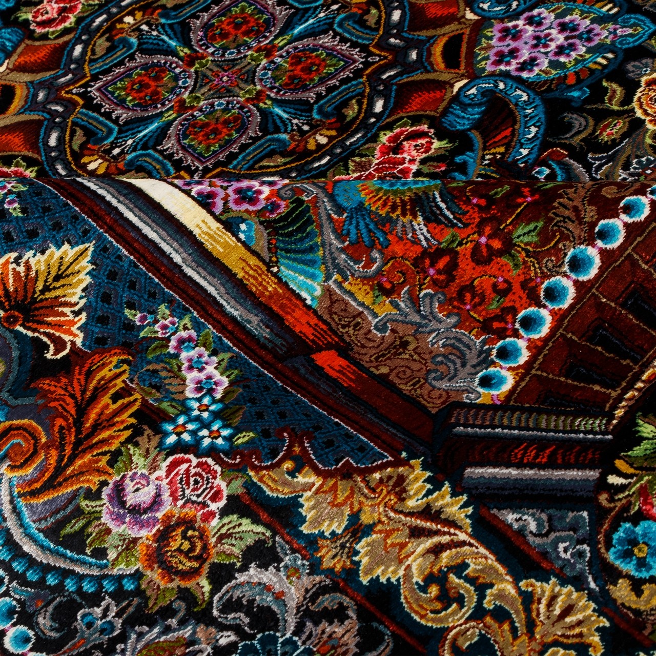 Handwoven Carpet, Corner Medallion Layout, All Silk, Qom, 137 × 202 cm Ref 10200433