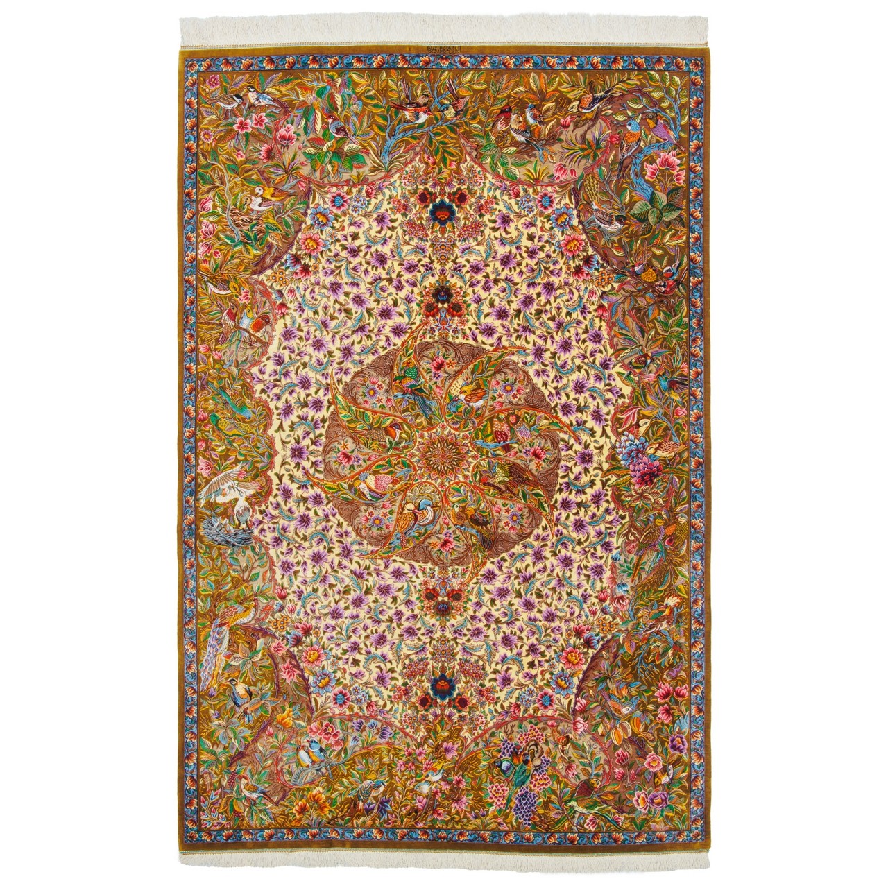 Handwoven Carpet, Corner Medallion Layout, All Silk, Qom, 138 × 210 cm Ref 10200466