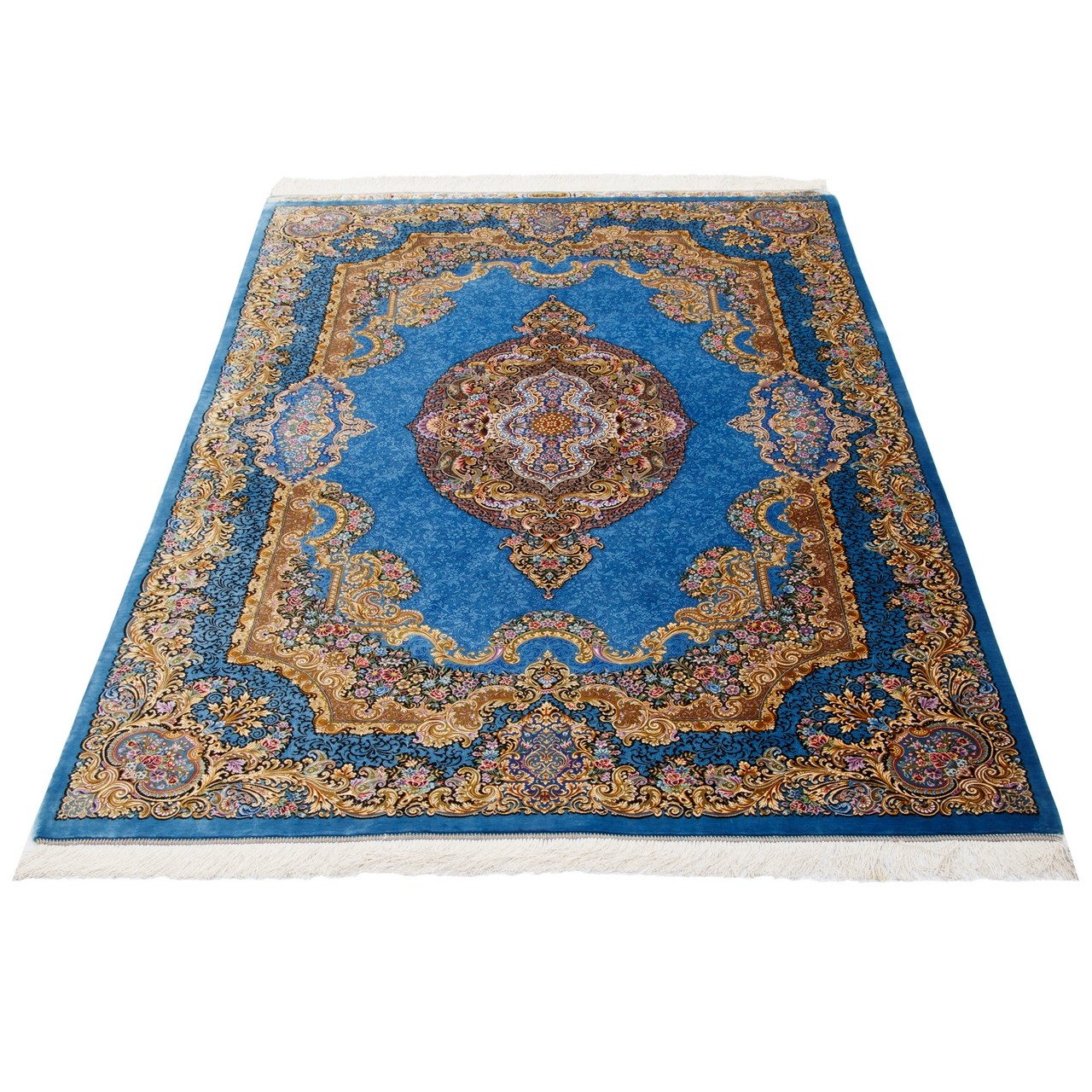 Handwoven Carpet, Corner Medallion Layout, All Silk, Qom, 141 × 214 cm Ref 10300406
