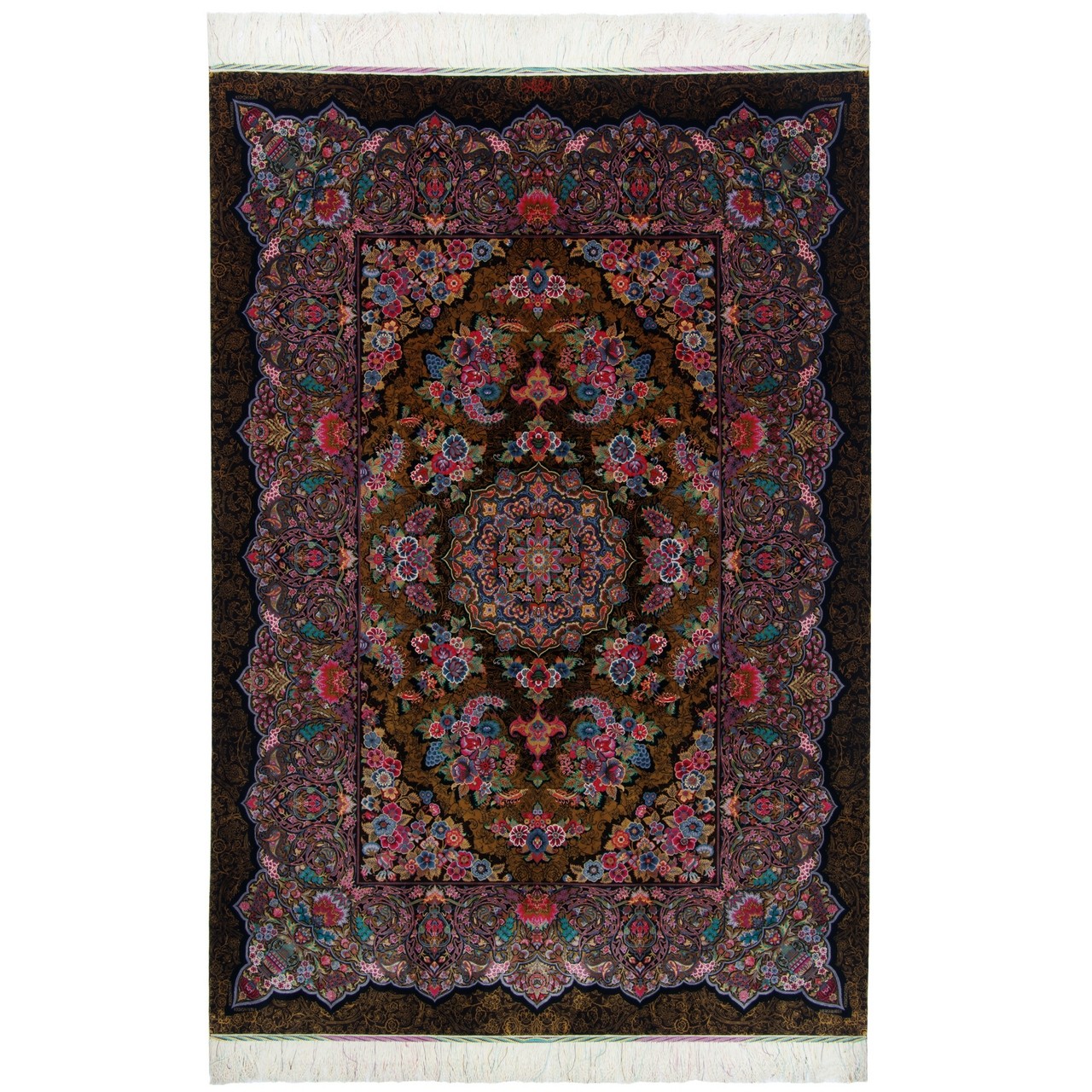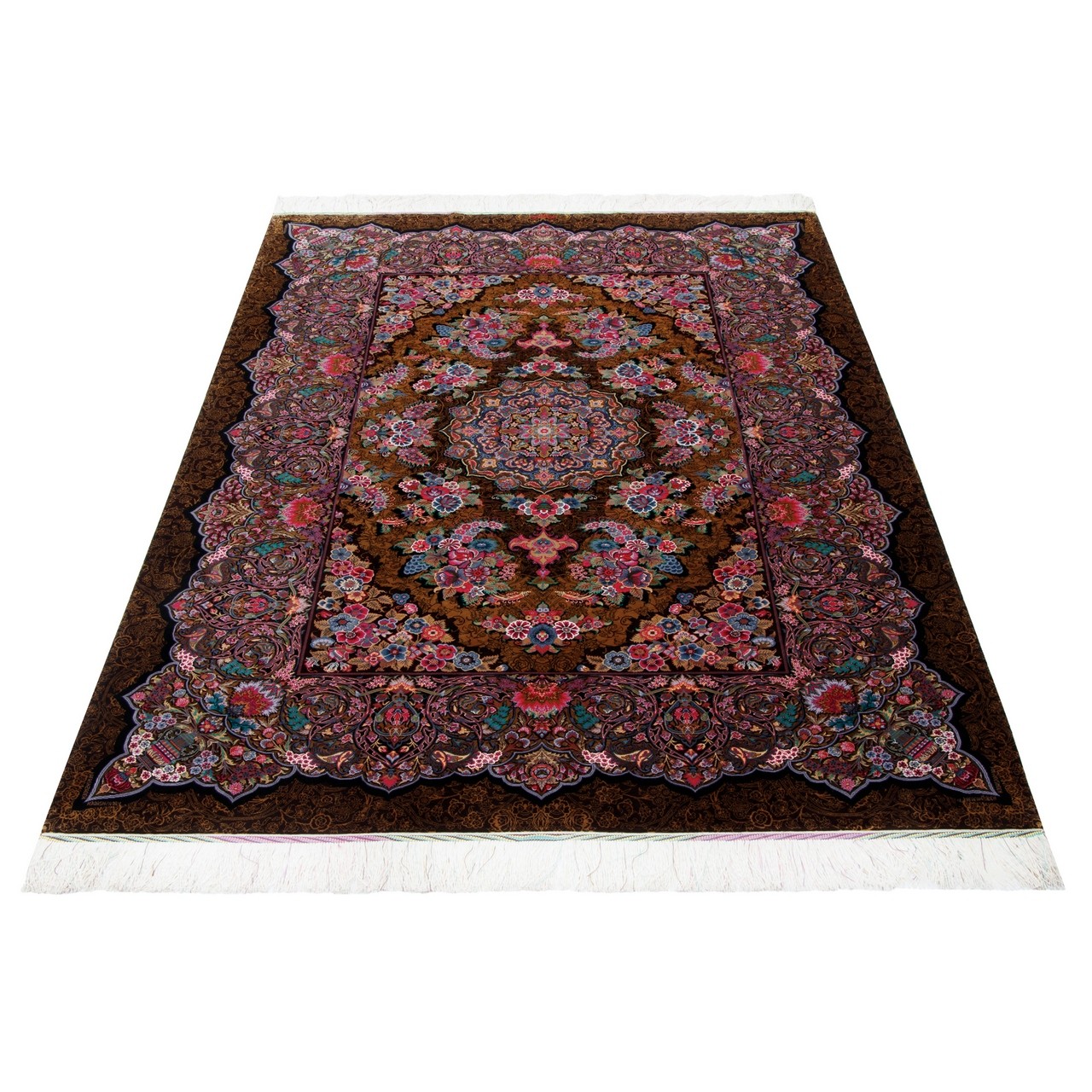 فرش دستباف طرح لچک ترنج تمام ابریشم قم 146 × 210 کد 10300405