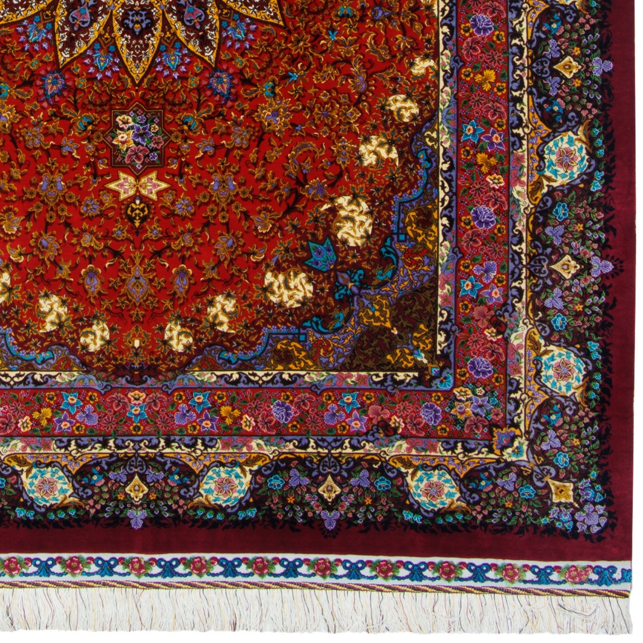 Handwoven Carpet, Corner Medallion Layout, All Silk, Qom, 150 × 215 cm Ref 10300415