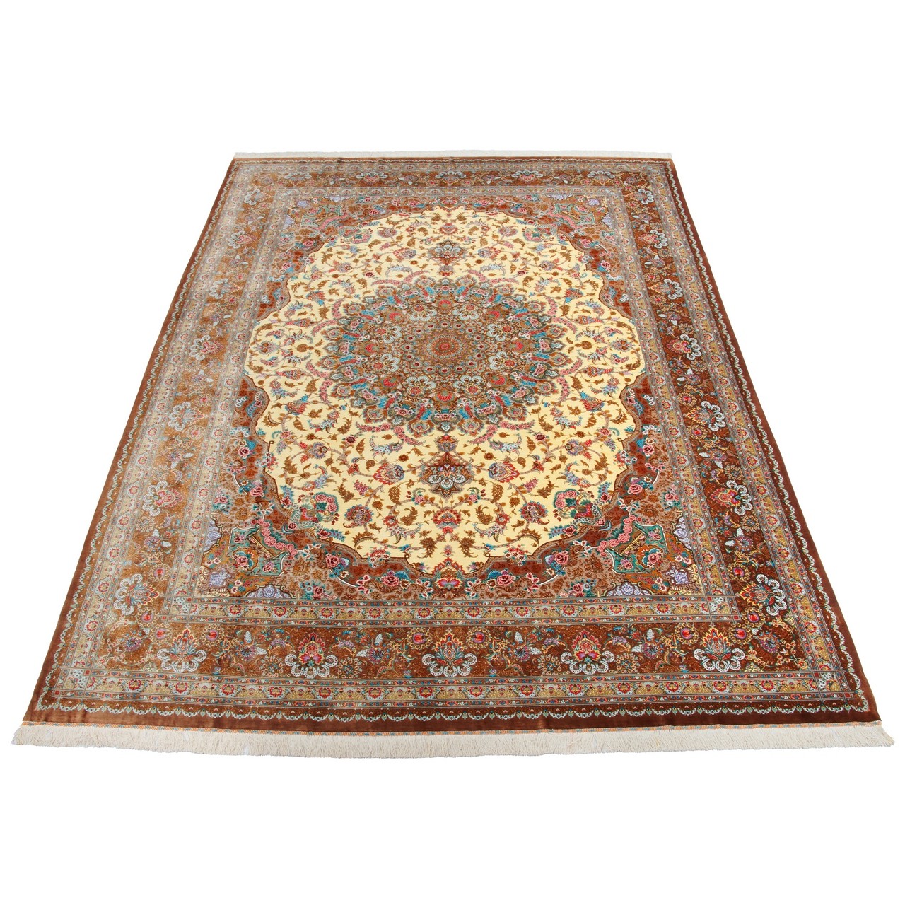 Handwoven Carpet, Corner Medallion Layout, All Silk, Qom, 291 × 395 cm Ref 11100648
