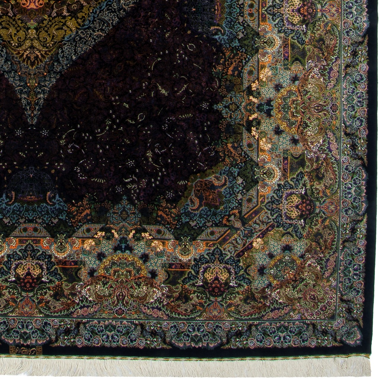Handwoven Carpet, Corner Medallion Layout, All Silk, Qom, 296 × 389 cm Ref 11100651