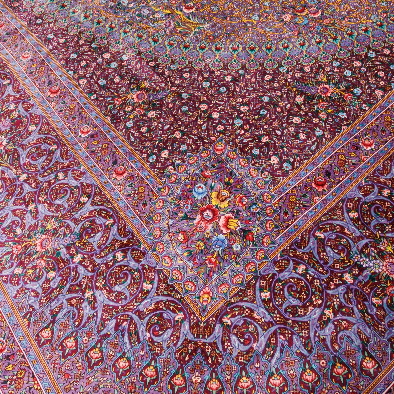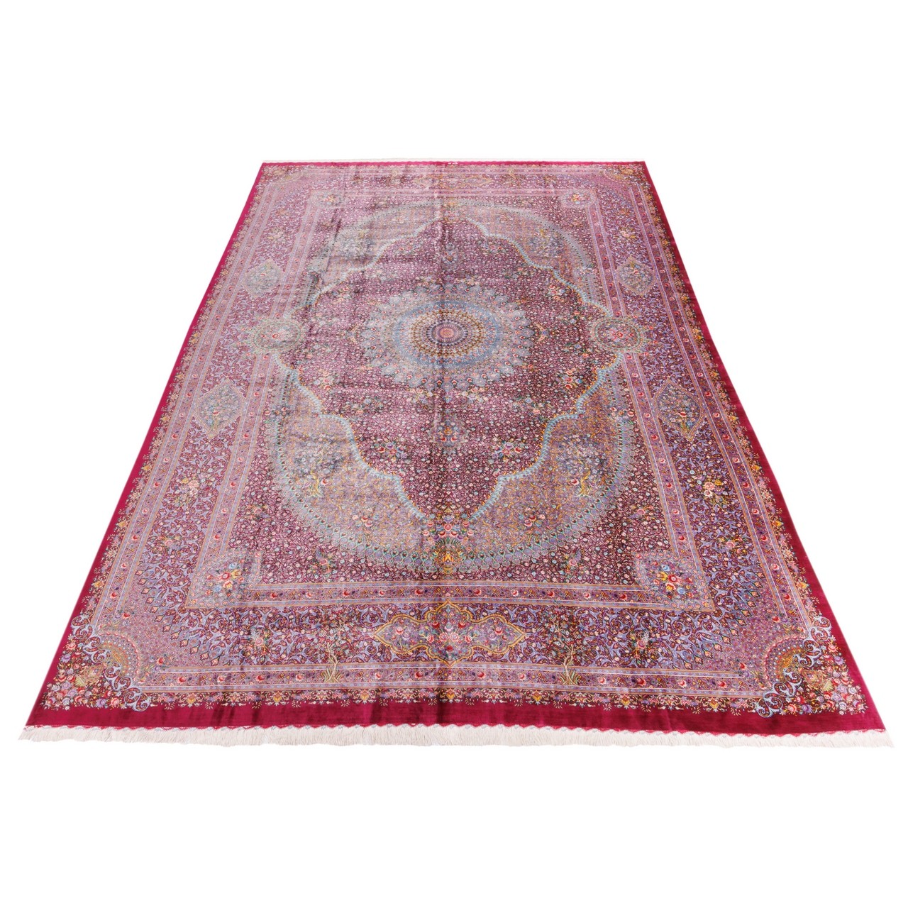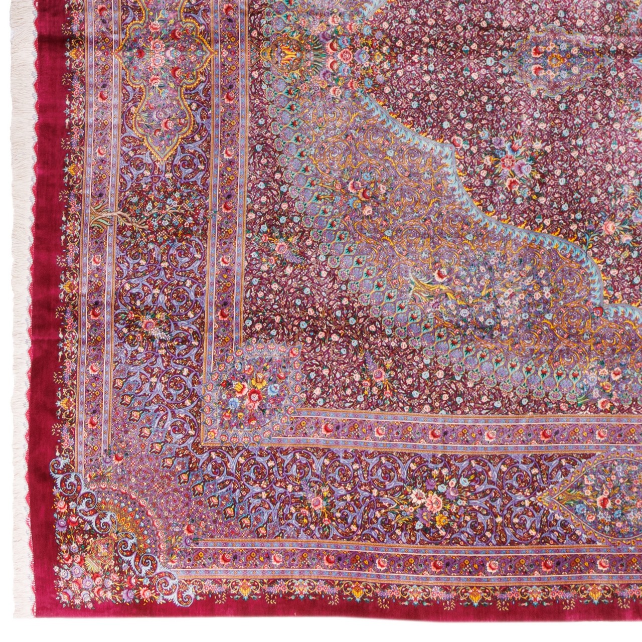 Handwoven Carpet, Corner Medallion Layout, All Silk, Qom, 347 × 497 cm Ref 11700737