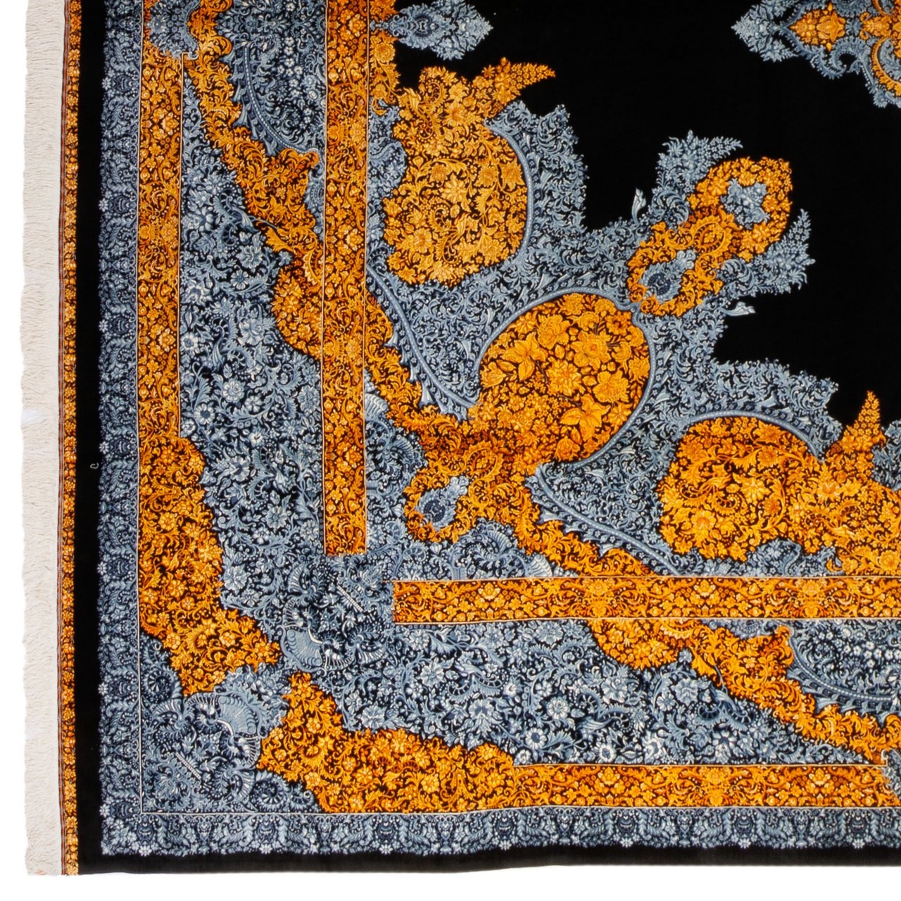 Handwoven Carpet, Corner Medallion Layout, All Silk, Qom, 390 × 599 cm Ref 12300740
