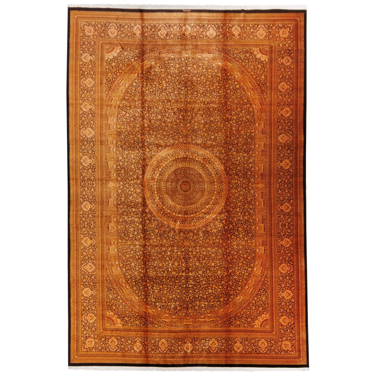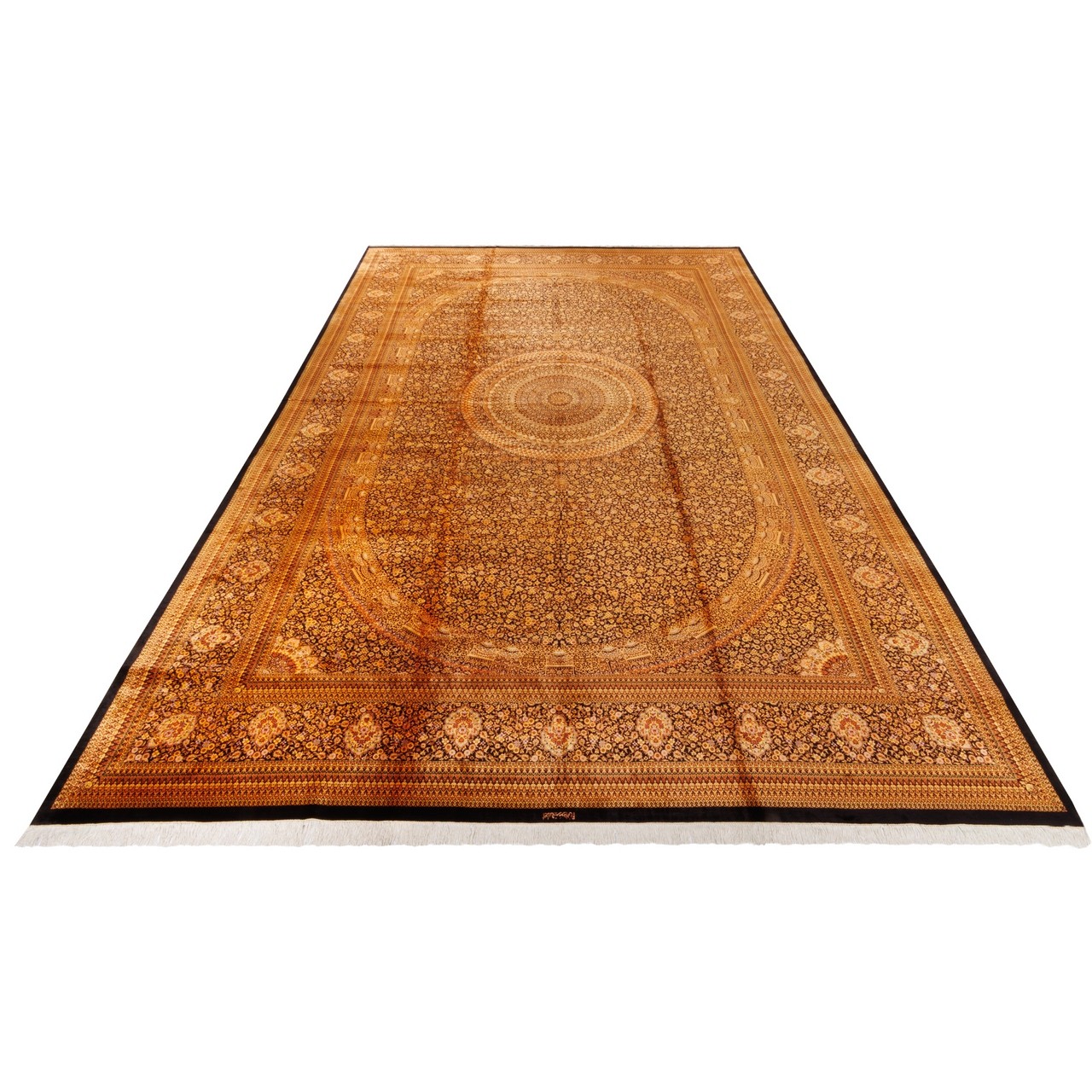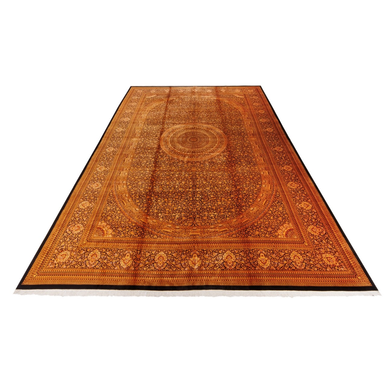 Handwoven Carpet, Corner Medallion Layout, All Silk, Qom, 392 × 589 cm Ref 12300747