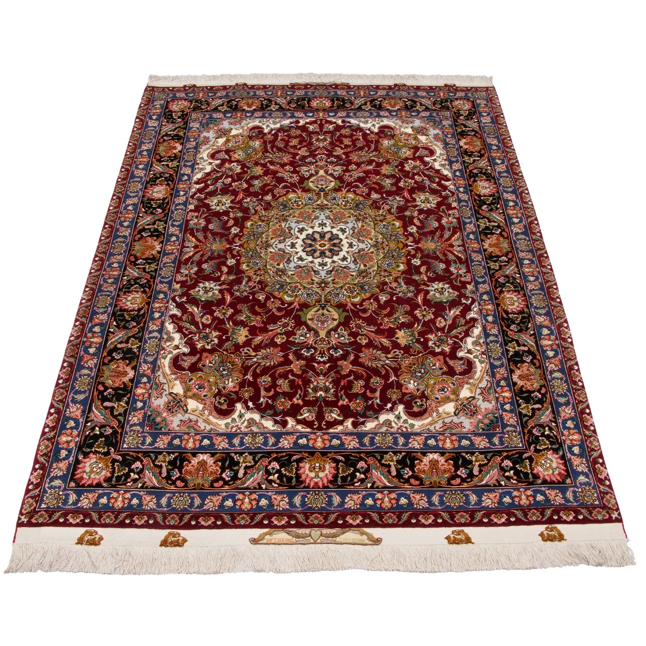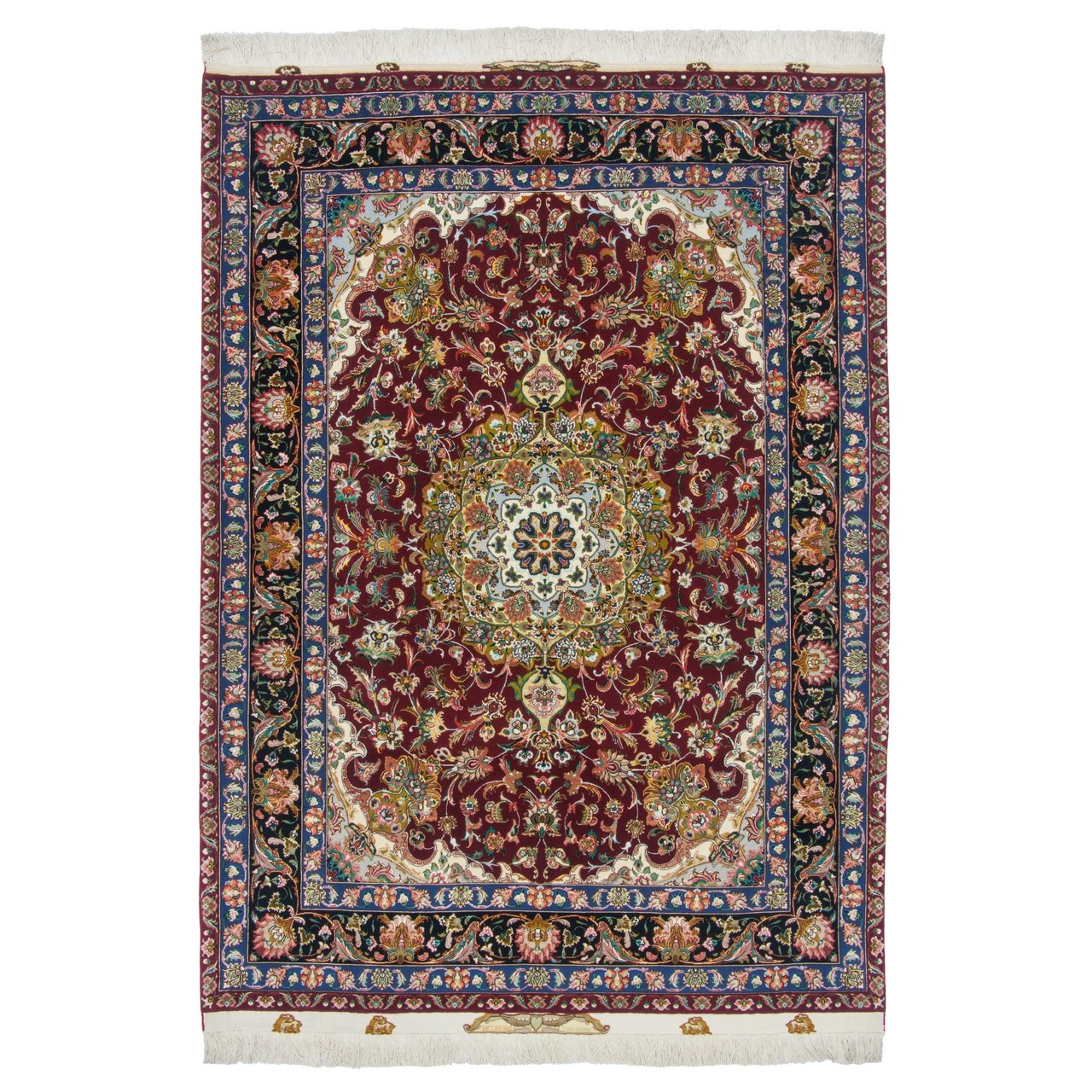فرش دستباف طرح لچک ترنج گل ابریشم چله ابریشم  تبریز 151 × 206 کد 10300497