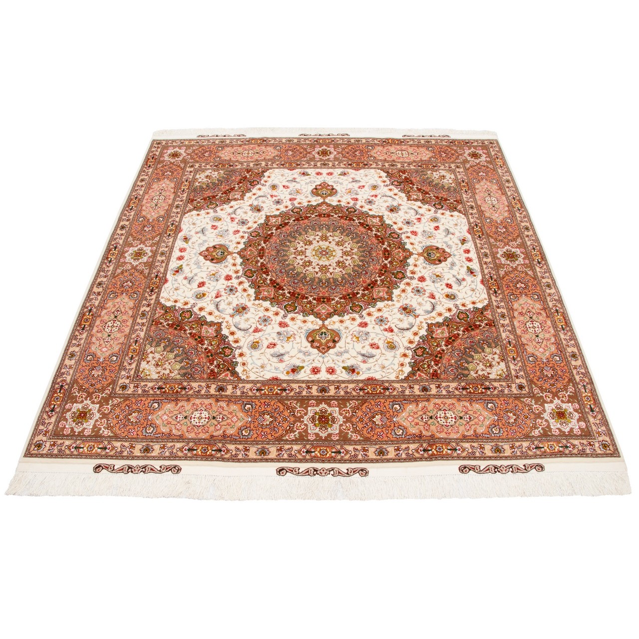 Handwoven Carpet, Corner Medallion Layout, Wool and Silk on Silk Warp, Tabriz, 200 × 205 cm Ref 10400558