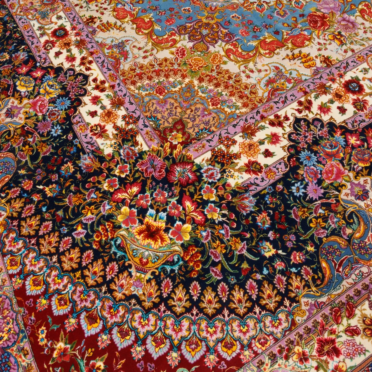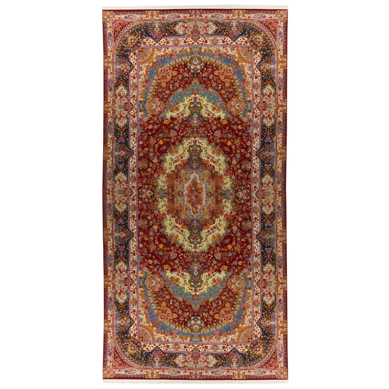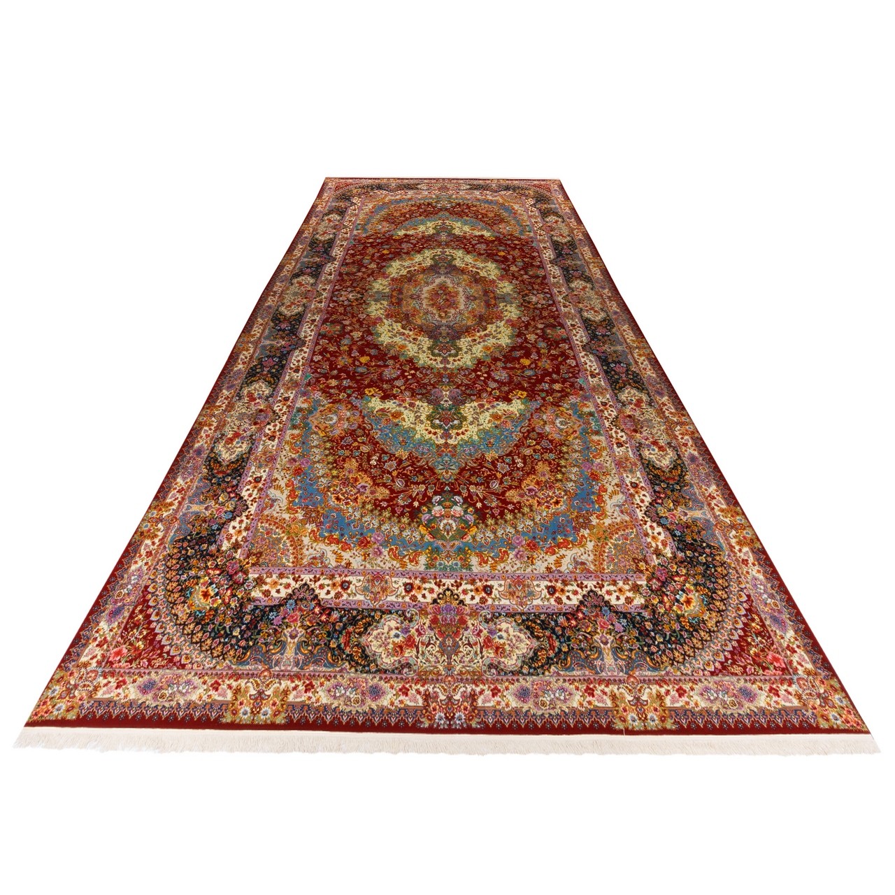 Handwoven Carpet, Corner Medallion Layout, Wool and Silk on Silk Warp, Tabriz, 395 × 808 cm Ref 13100756