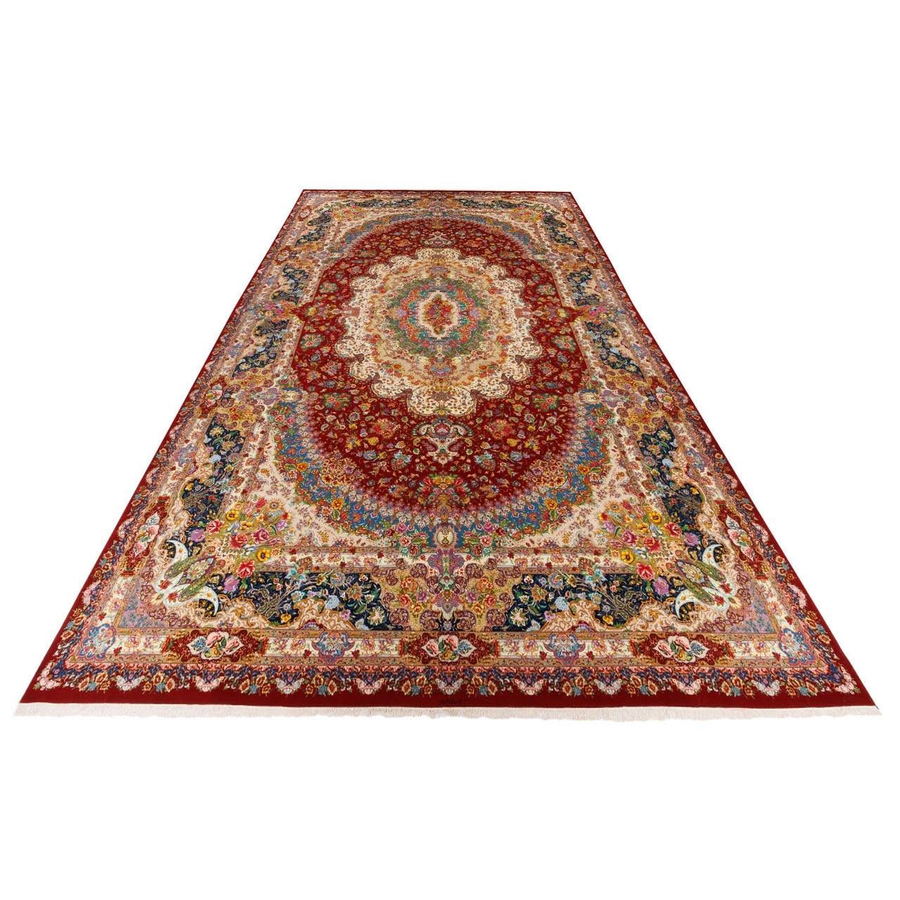 Handwoven Carpet, Corner Medallion Layout, Wool and Silk on Silk Warp, Tabriz, 489 × 820 cm Ref 14000755