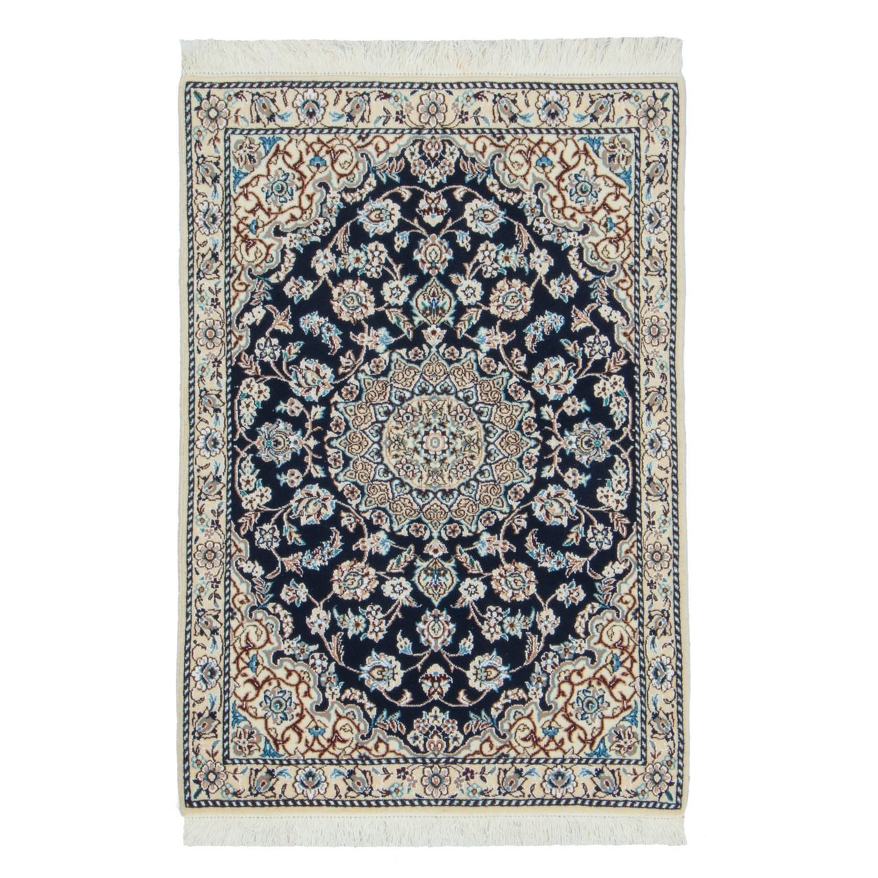 Handwoven Carpet, Corner Medallion Layout, Wool and Silk on Wool Warp, Nain, 80 × 113 cm Ref 10001337