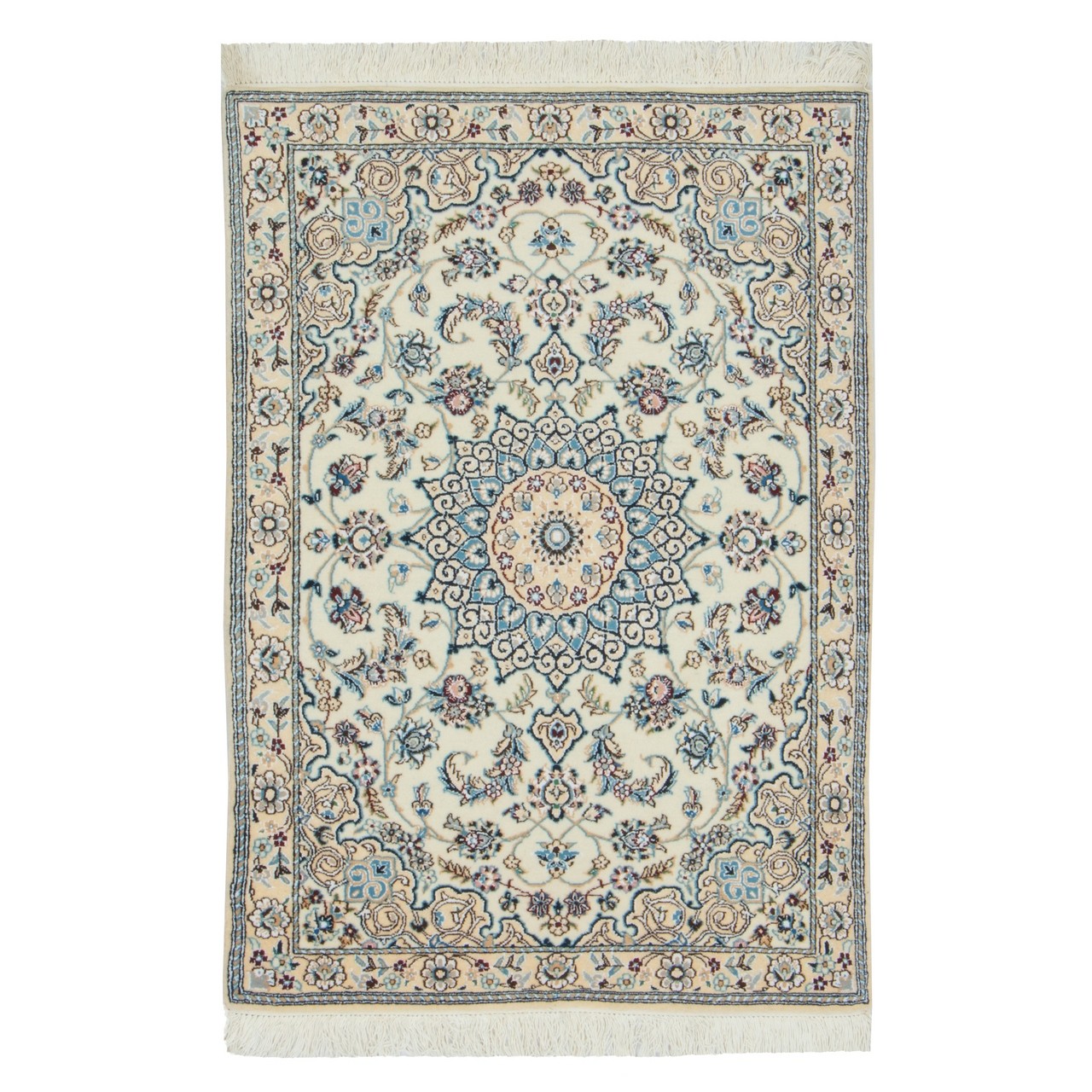 Handwoven Carpet, Corner Medallion Layout, Wool and Silk on Wool Warp, Nain, 80 × 123 cm Ref 10001323