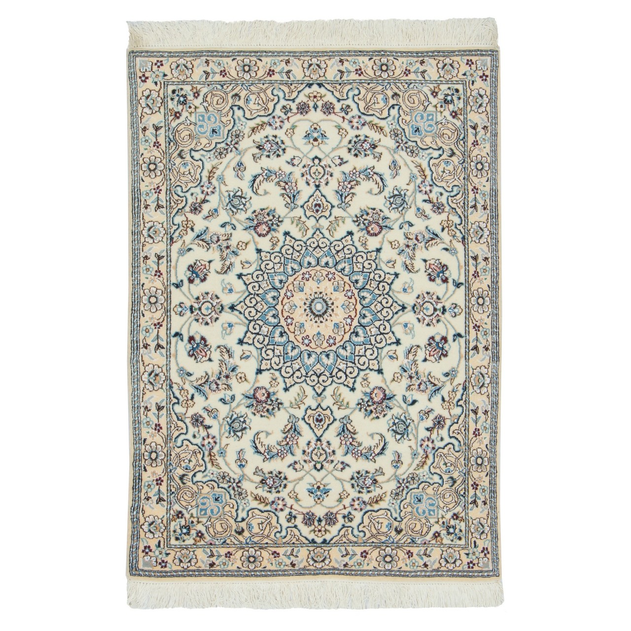 Handwoven Carpet, Corner Medallion Layout, Wool and Silk on Wool Warp, Nain, 90 × 125 cm Ref 10101324