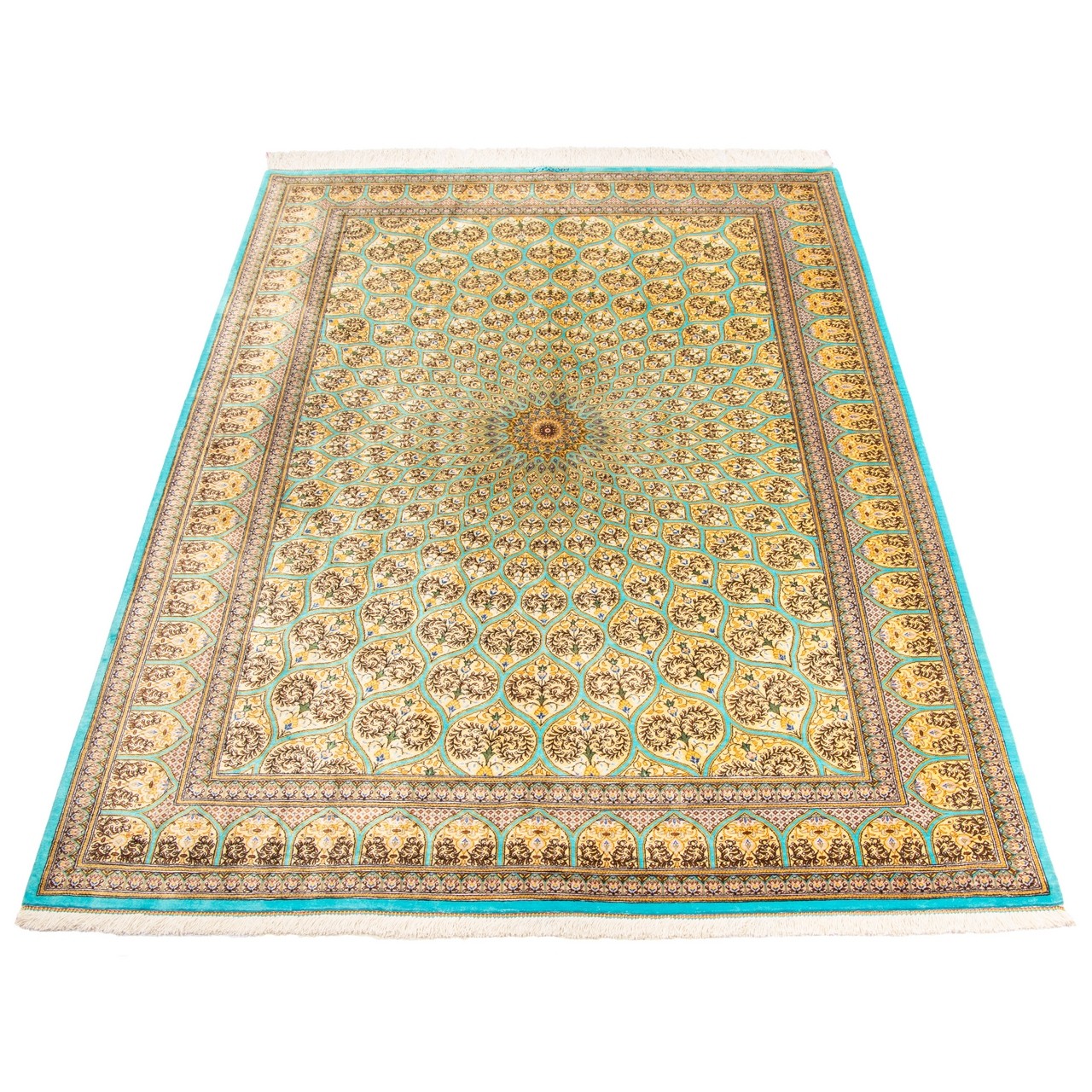 Handwoven Carpet, Dome Layout, All Silk, Qom, 135 × 198 cm Ref 10200485