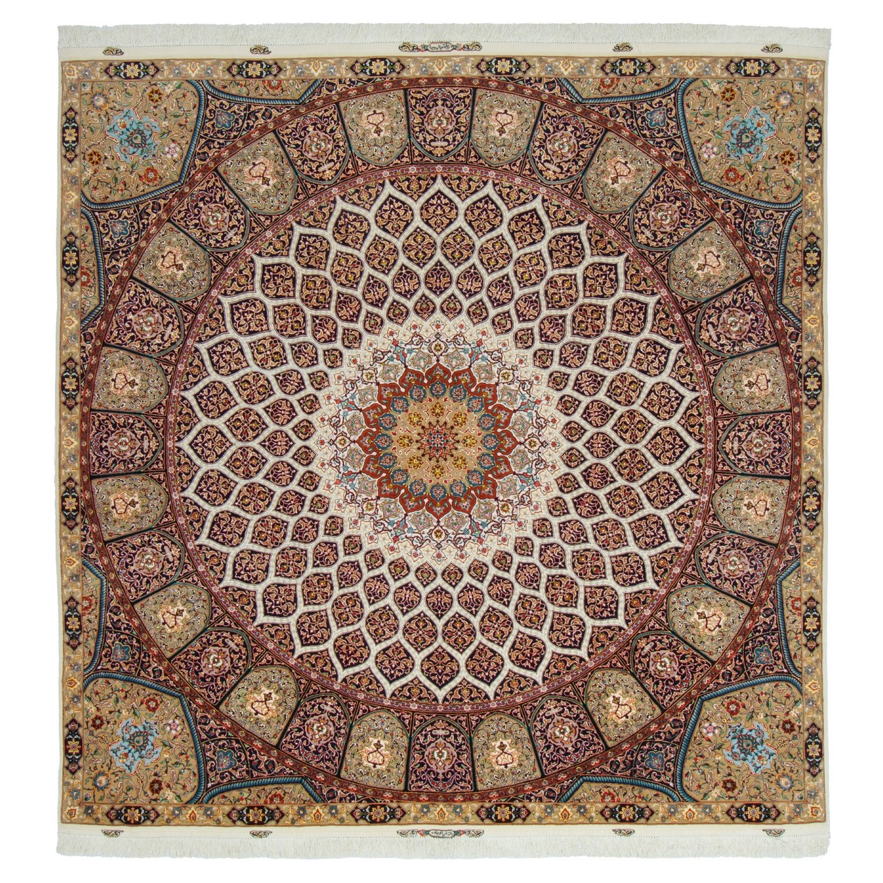Handwoven Carpet, Dome Layout, Wool and Silk on Silk Warp, Tabriz, 250 × 250 cm Ref 10600578
