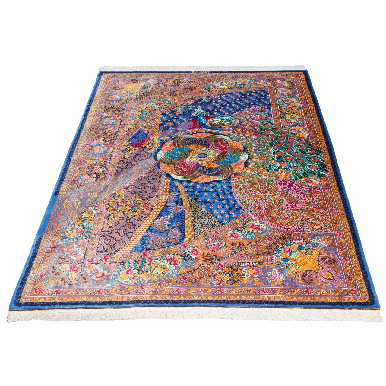 Handwoven Carpet, Medallion Layout, All Silk, Qom, 132 × 205 cm Ref 10200451