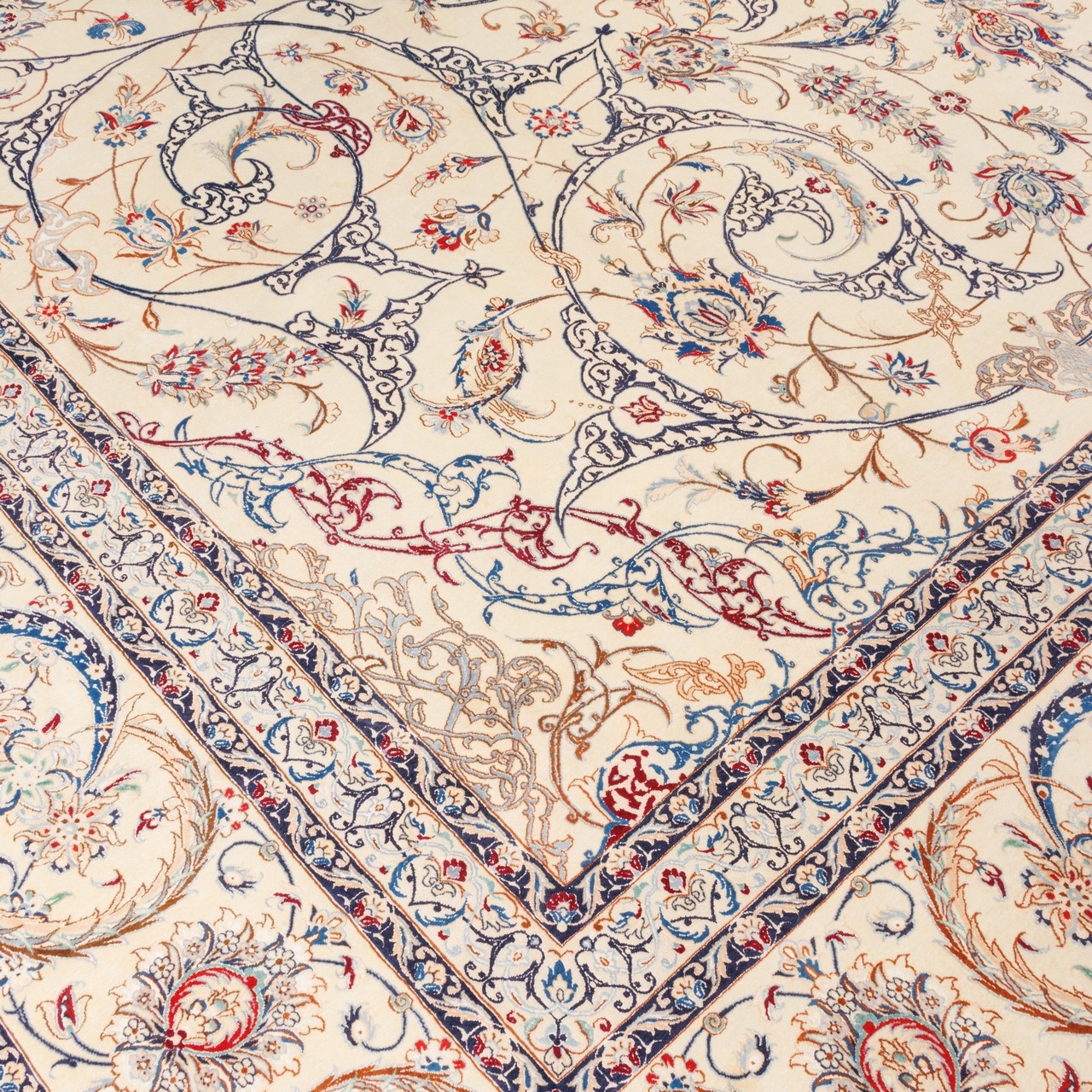 Handwoven Carpet Medallion Layout Wool and Silk on Cotton Warp Nain 400 × 559 cm Ref 12200717 Handwoven Carpet Medallion Layout Wool and Silk on Cotton Warp Nain