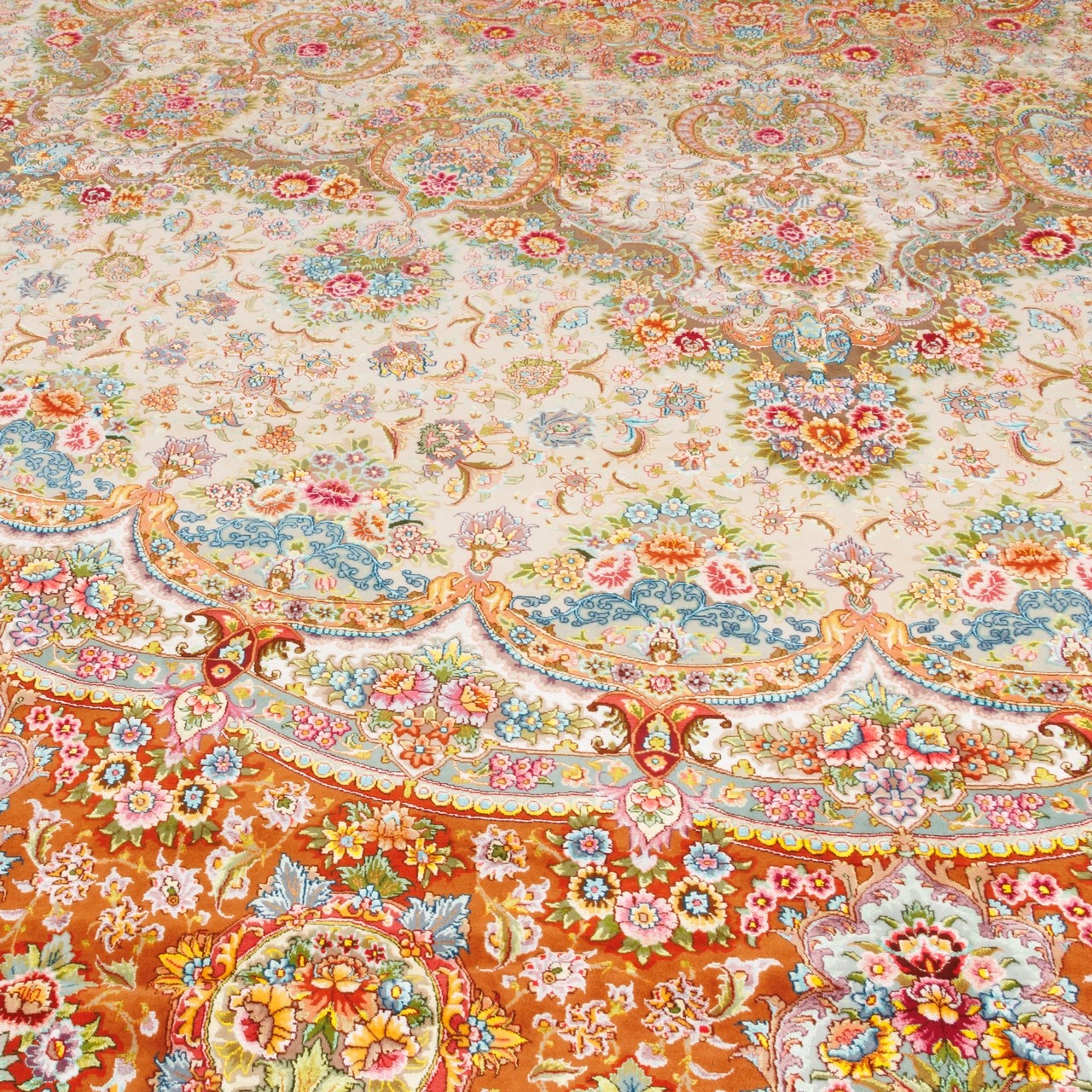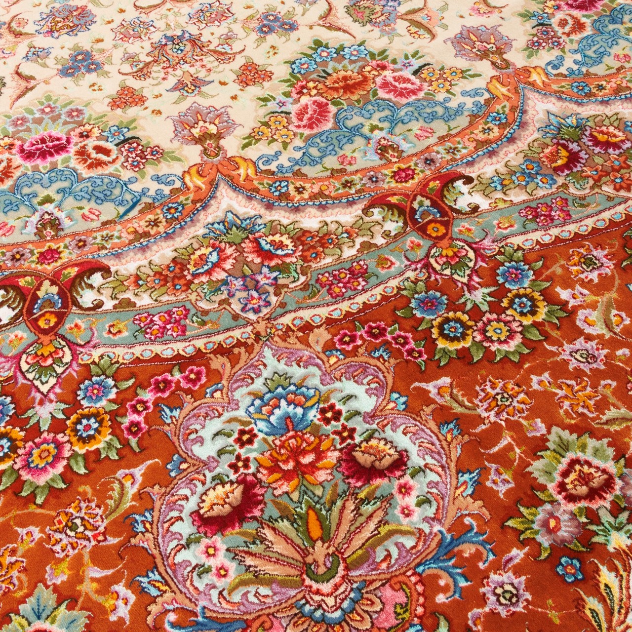 Handwoven Carpet, Medallion Layout, Wool and Silk on Silk Warp, Tabriz, 680 × 720 cm Ref 14801118