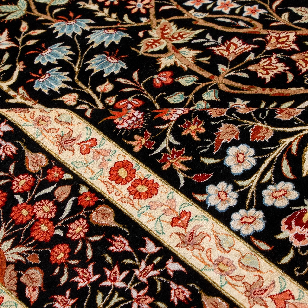 Handwoven Carpet, Tree of Life Layout, All Silk, Qom, 126 × 192 cm Ref 10200477