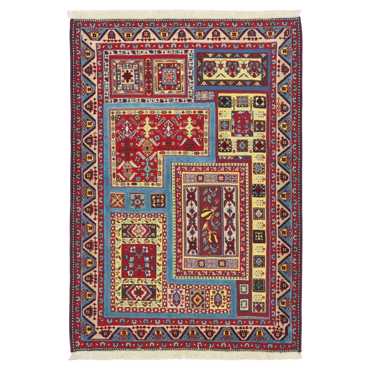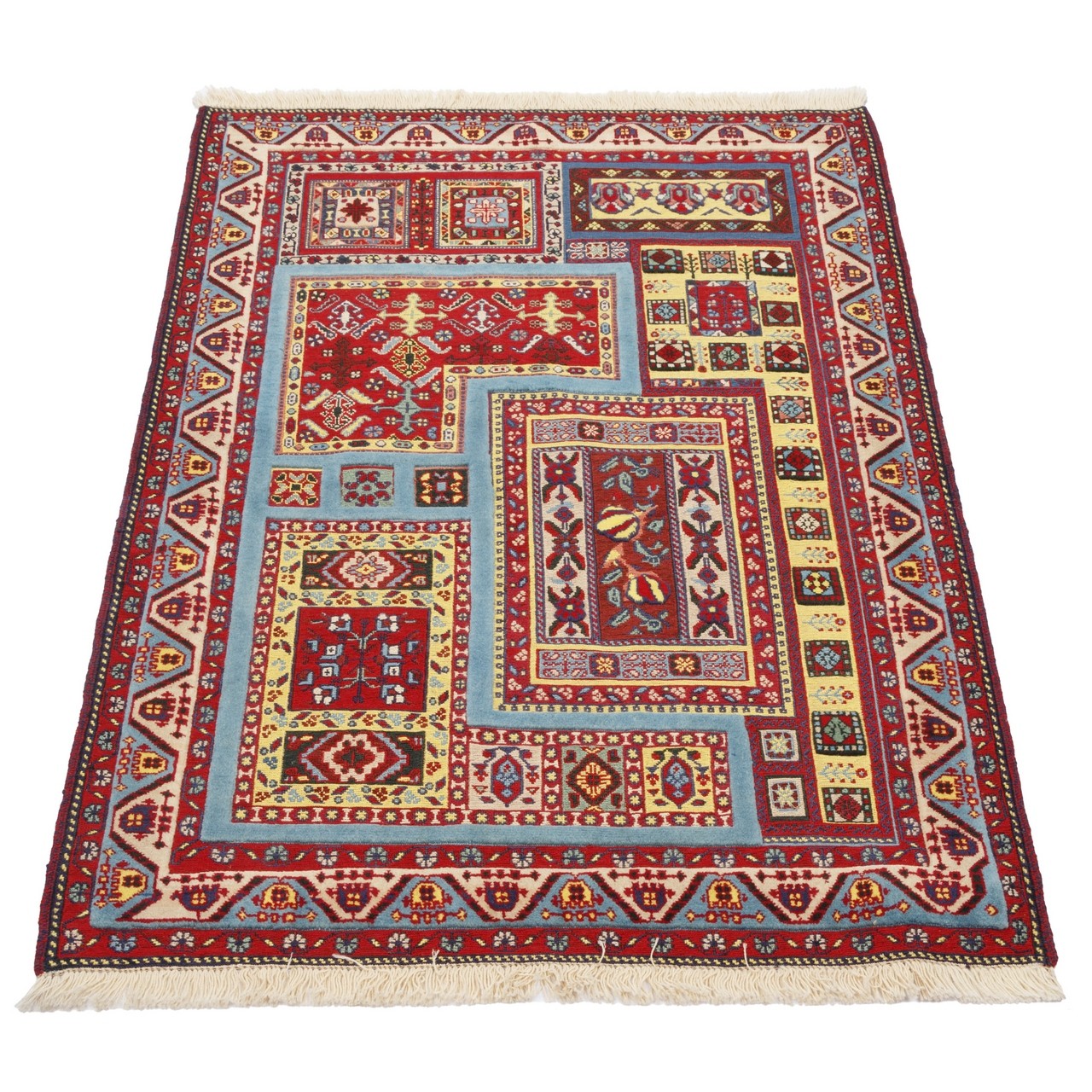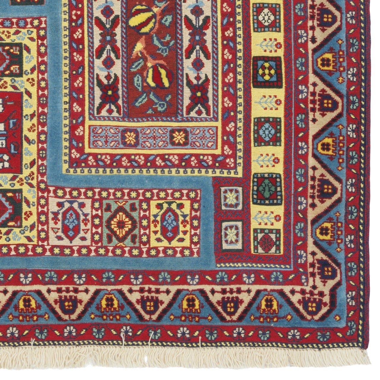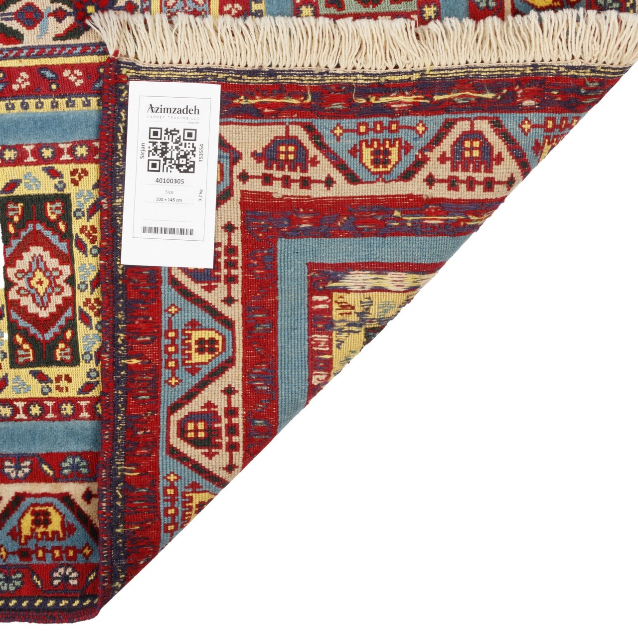 Handwoven Sirjan kilim-rug, 100 × 145 cm (3'3" × 4'9"), area 1.45 m² (15.61 ft²). All-wool construction; all-over design; knot density: 1,800 knots/dm². This piece features an all-over layout in which geometric motifs are repeated across the entire surface in an orderly, balanced rhythm. A multicolored palette is employed in both the field and the border, derived from a natural, plant-based range of hues—warm and lively tones, each used with a specific intent within the composition. Despite the variety, the overall effect is cohesive and visually pleasing, allowing easy harmony with interiors from classic to modern. This Sirjan all-over kilim embodies the taste, cultural memory, and patience of artisans who transform warp and weft of wool into a narrative of their homeland.