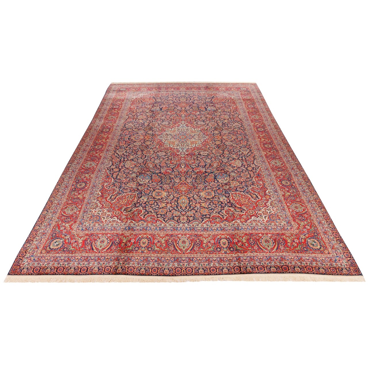 Old Handwoven Carpet, Corner Medallion Layout, Wool on Cotton Warp, Kashan, 335 × 503 cm Ref 11600625