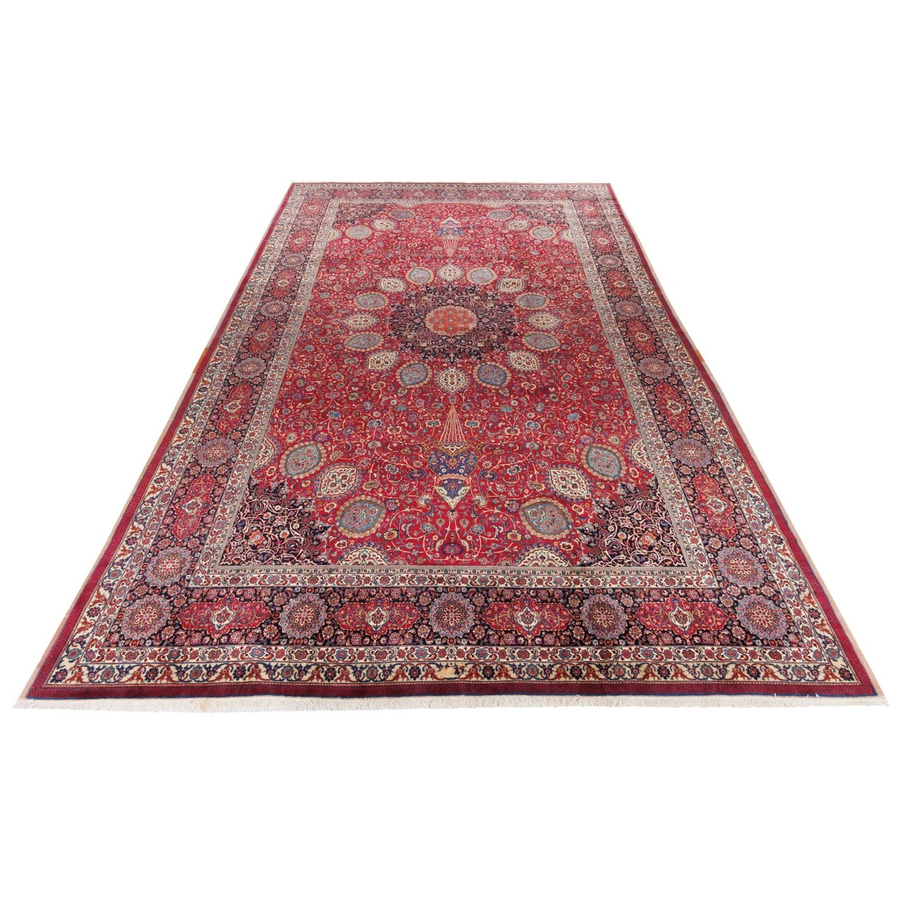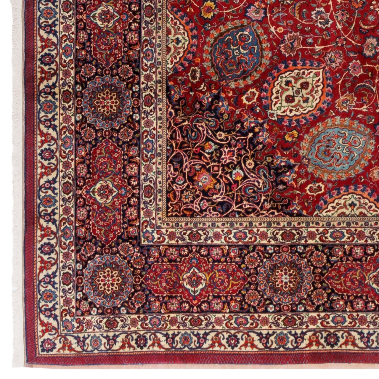 Old Handwoven Carpet, Corner Medallion Layout, Wool on Cotton Warp, Mashad, 346 × 556 cm Ref 11900701