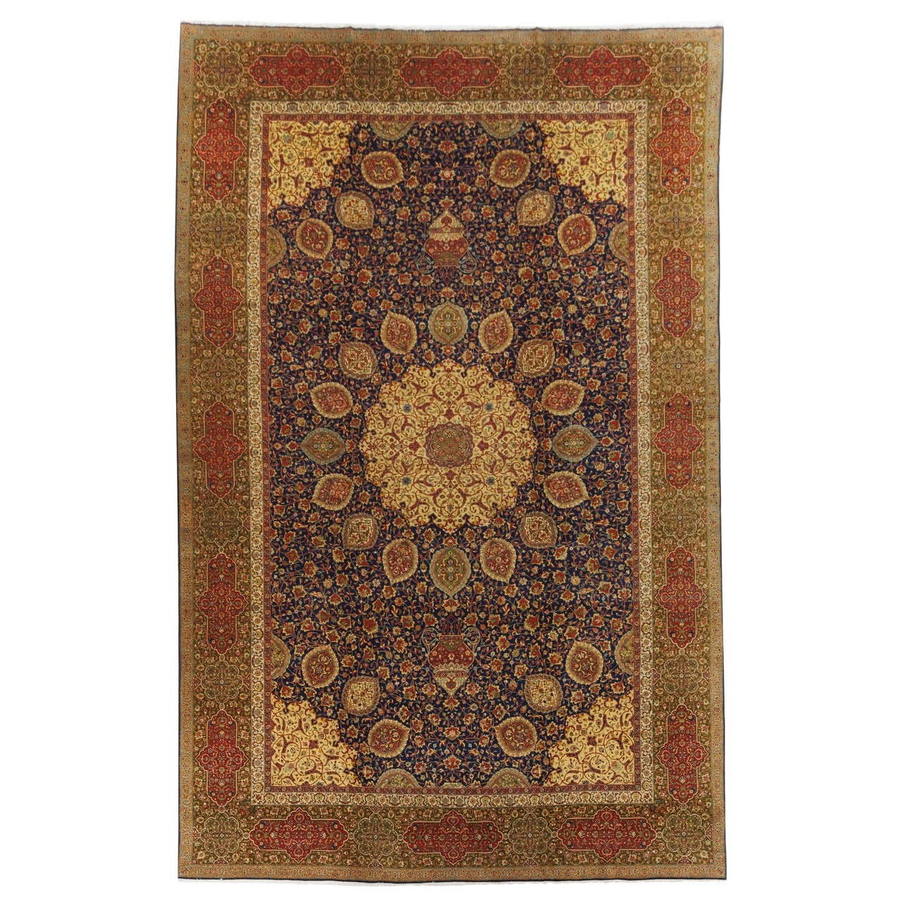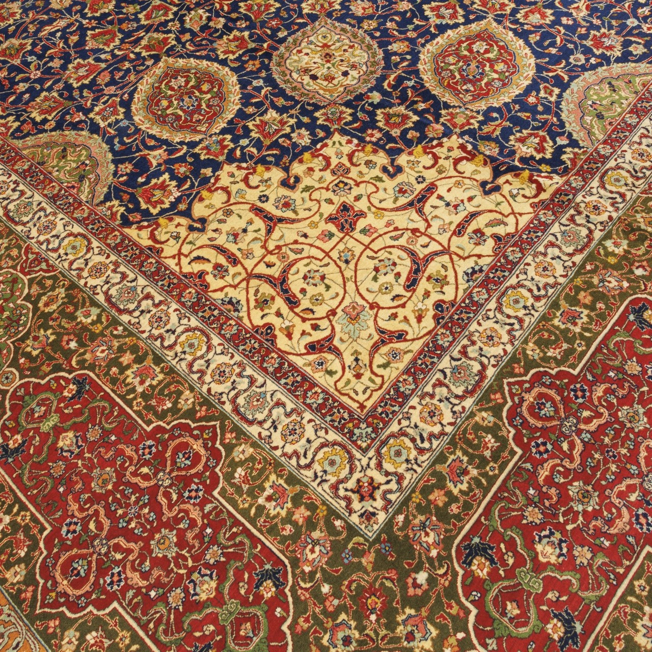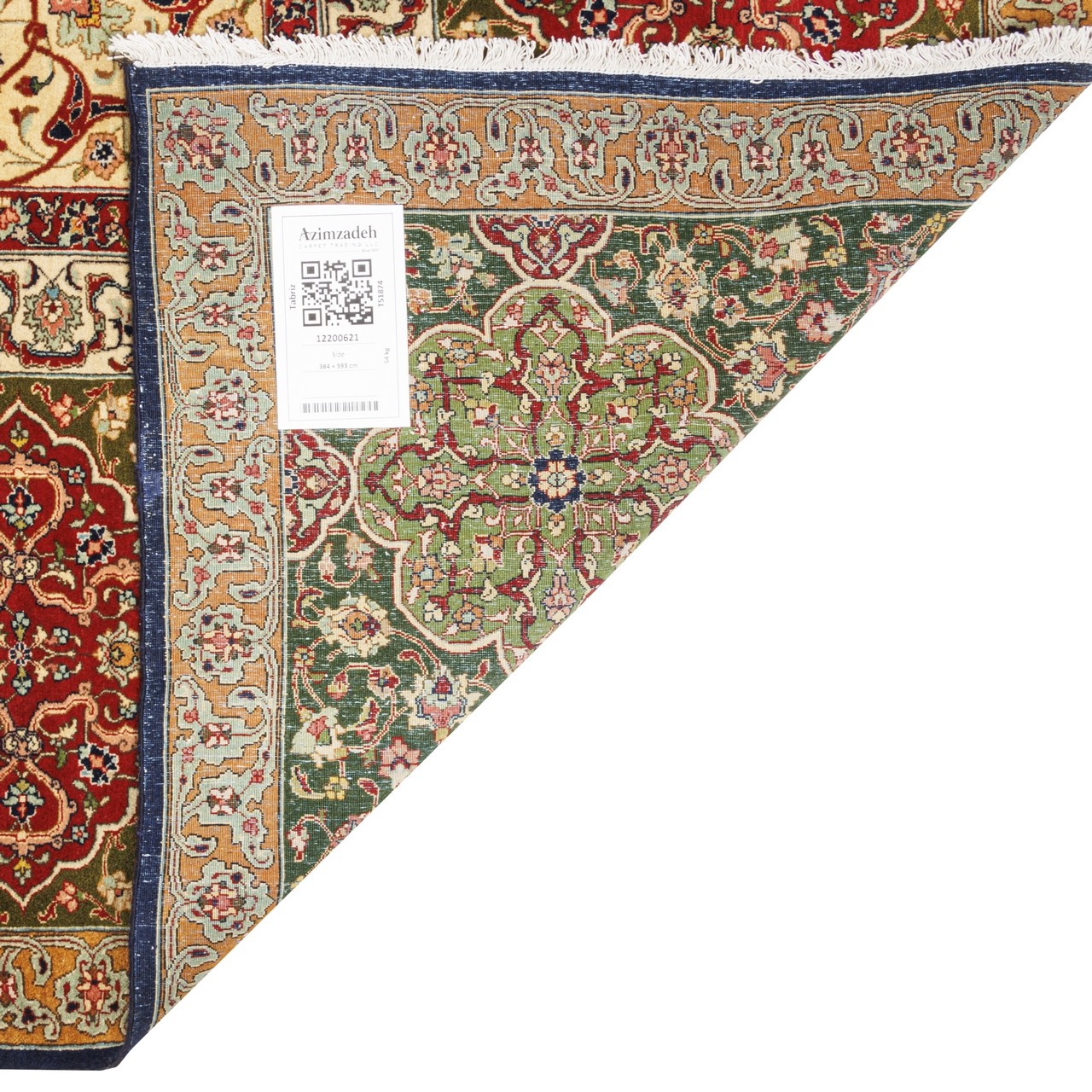 Old Handwoven Carpet, Corner Medallion Layout, Wool on Cotton Warp, Tabriz, 384 × 593 cm Ref 12200621