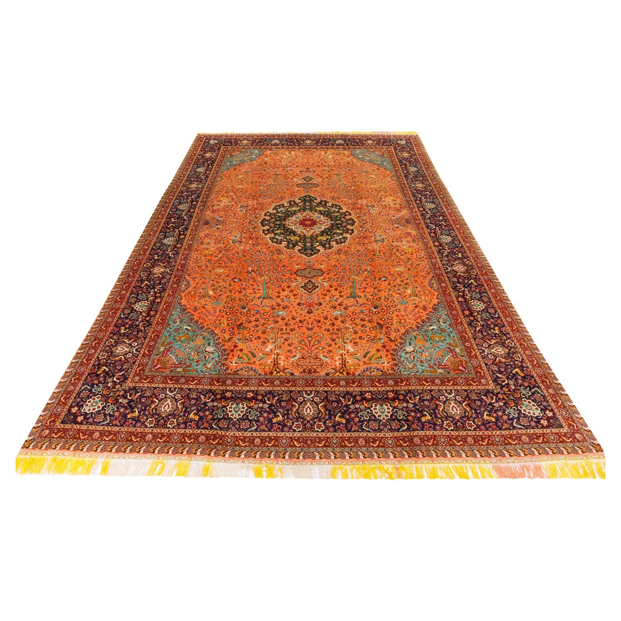Old Handwoven Carpet, Corner Medallion Layout, Wool on Silk Warp, Tabriz, 405 × 591 cm Ref 12300718