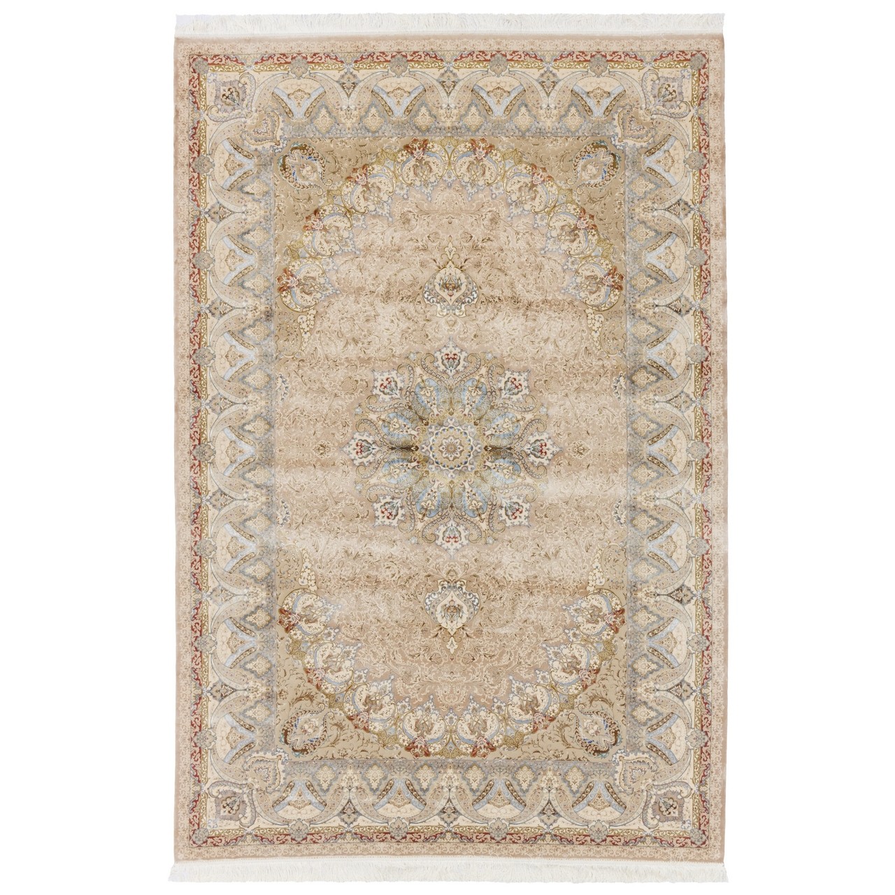 Machine-made Rug, Floral Corner Medallion, Acrylic + Bamboo Silk, Persian Style, Ref 200178