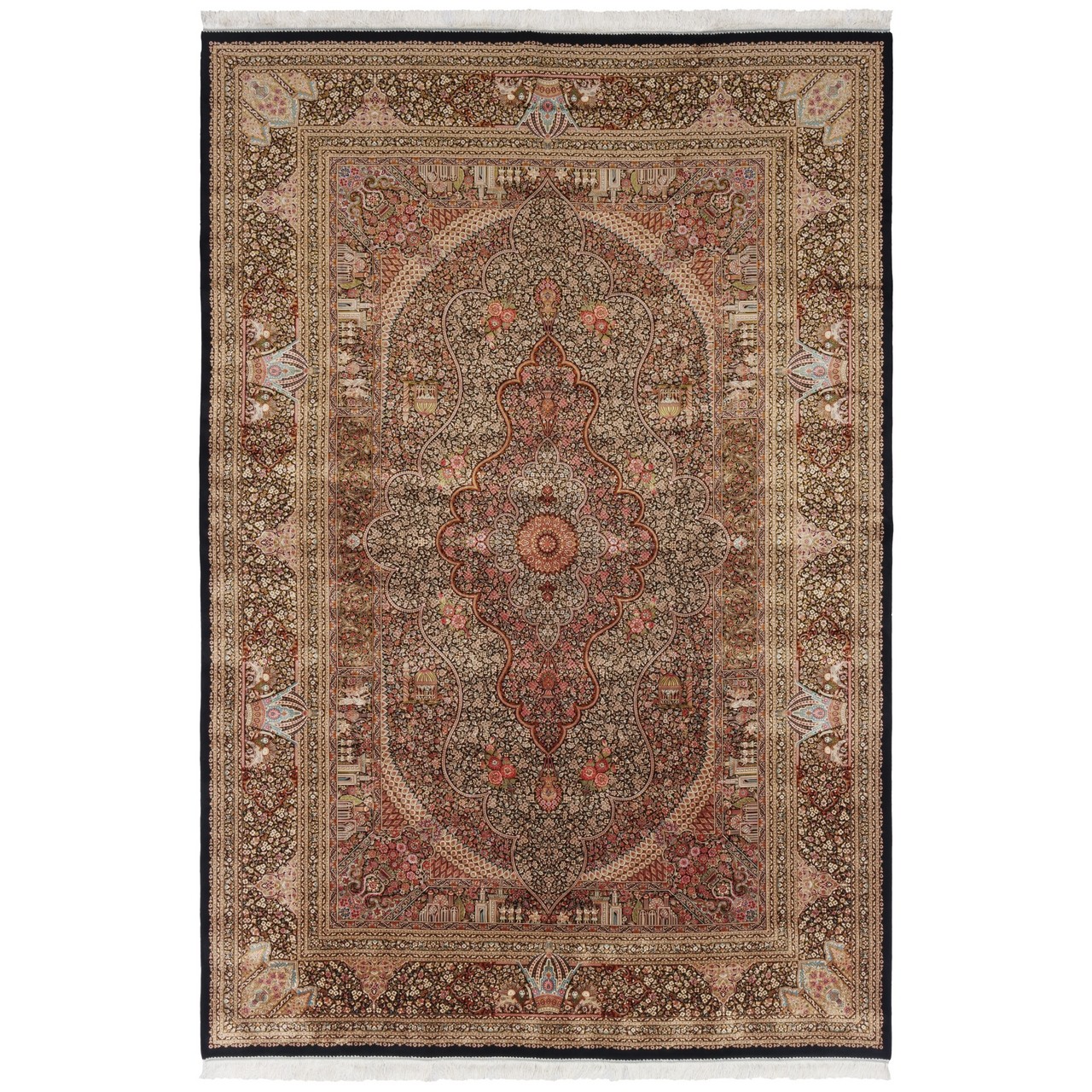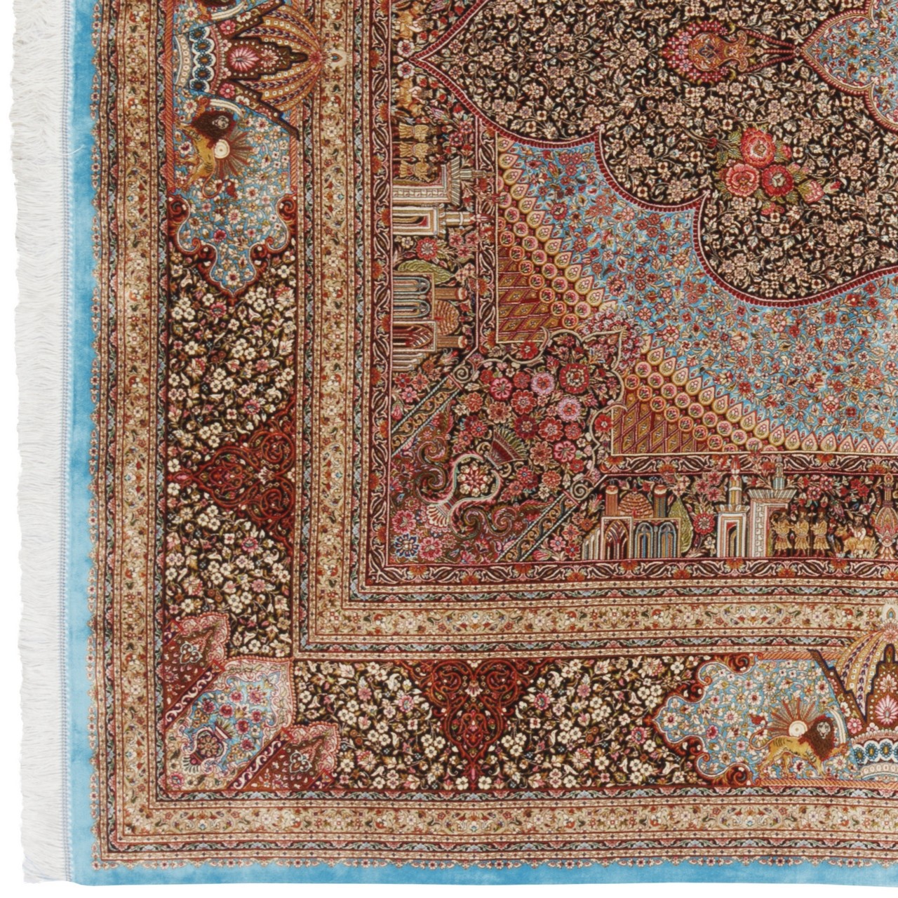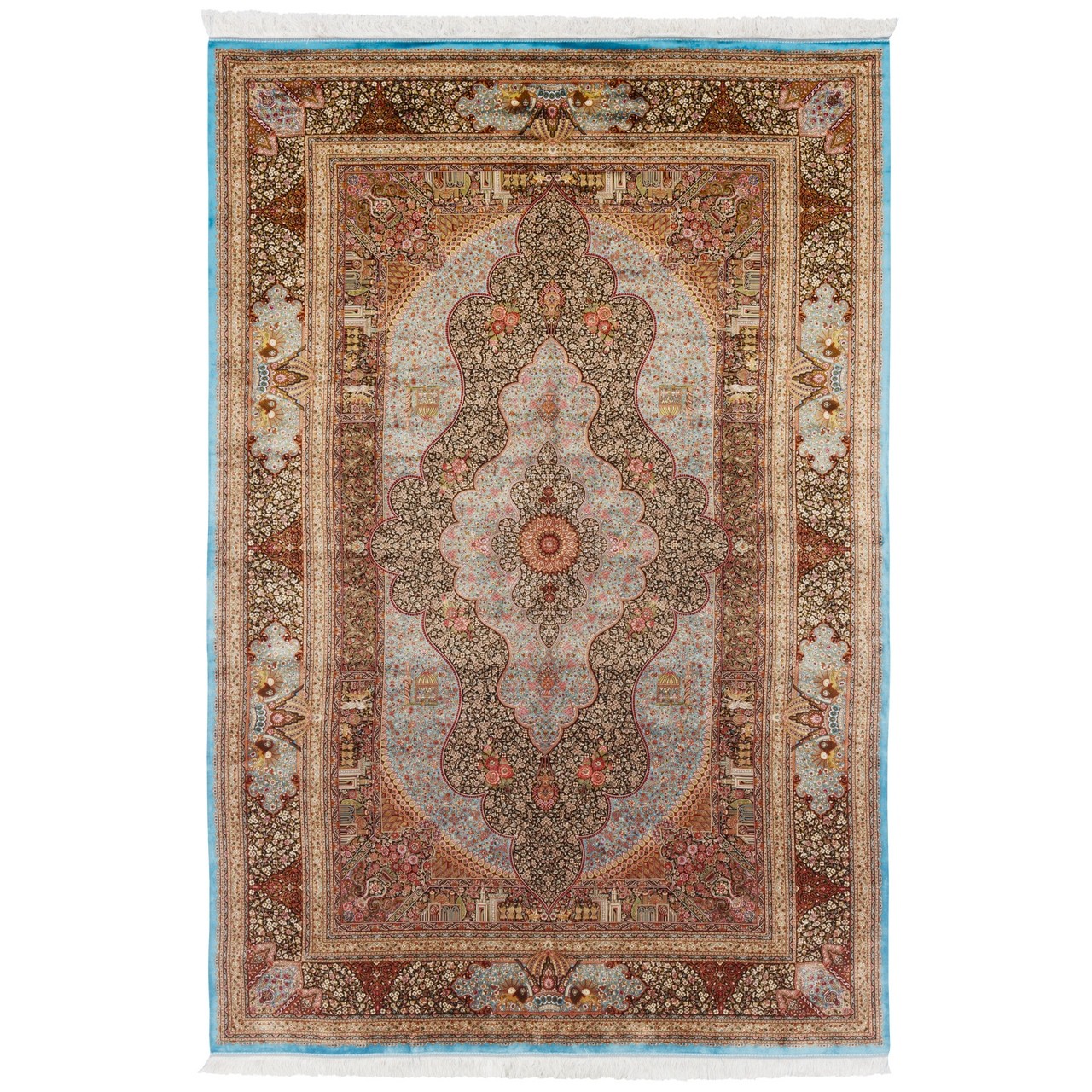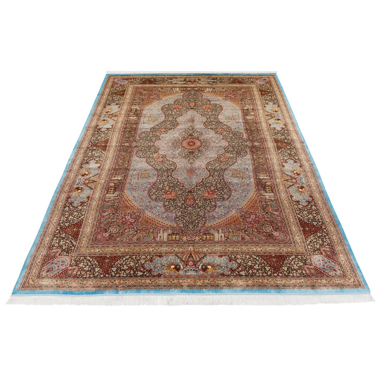 Machine-made Rug, Floral Corner Medallion, Acrylic + Bamboo Silk, Persian Style, Ref 200249