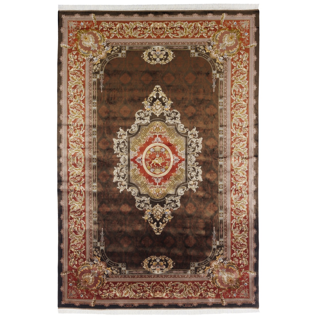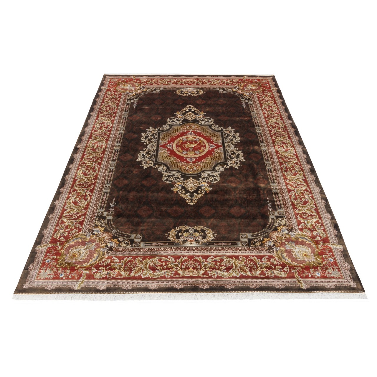 Machine-made Rug, Floral Corner Medallion, Bamboo Silk, Persian Style, Ref 800253