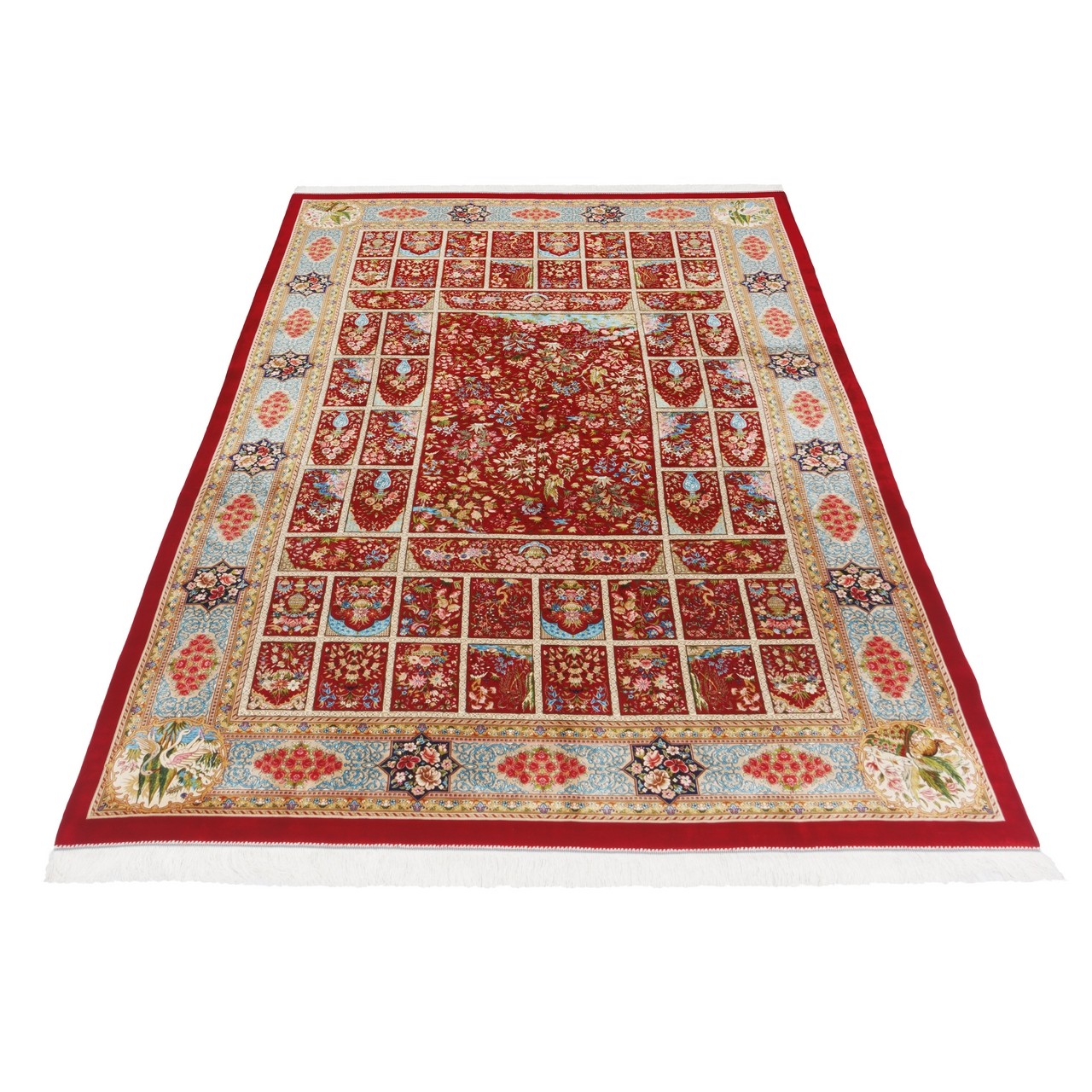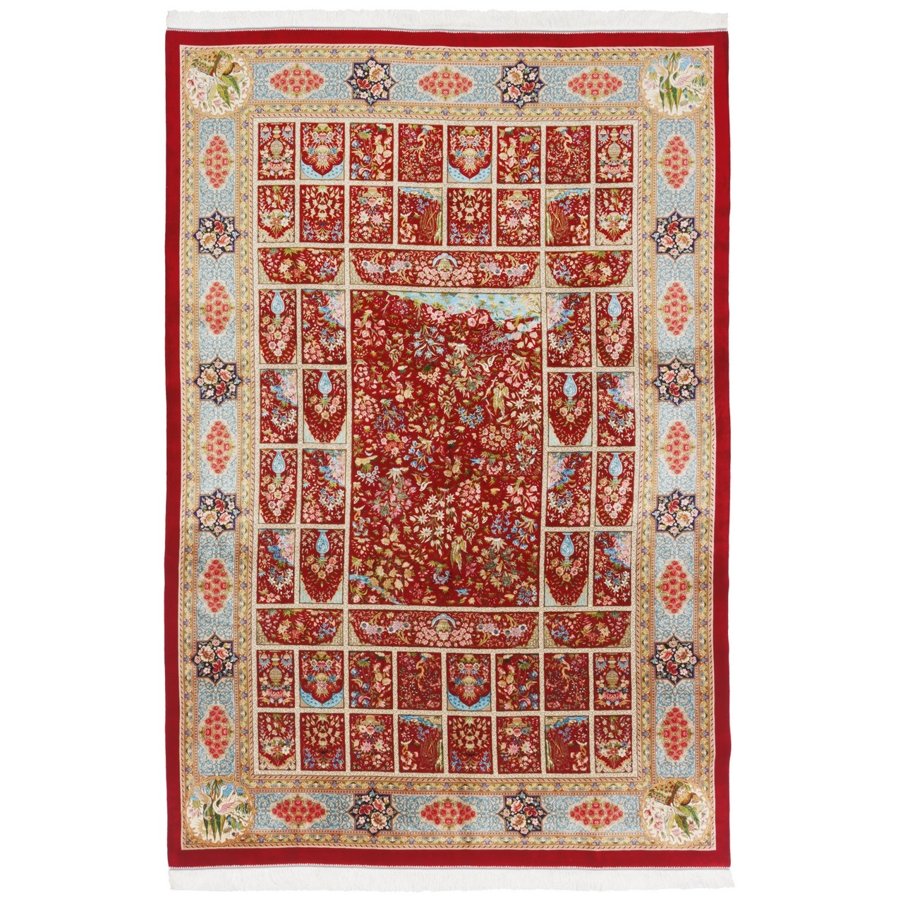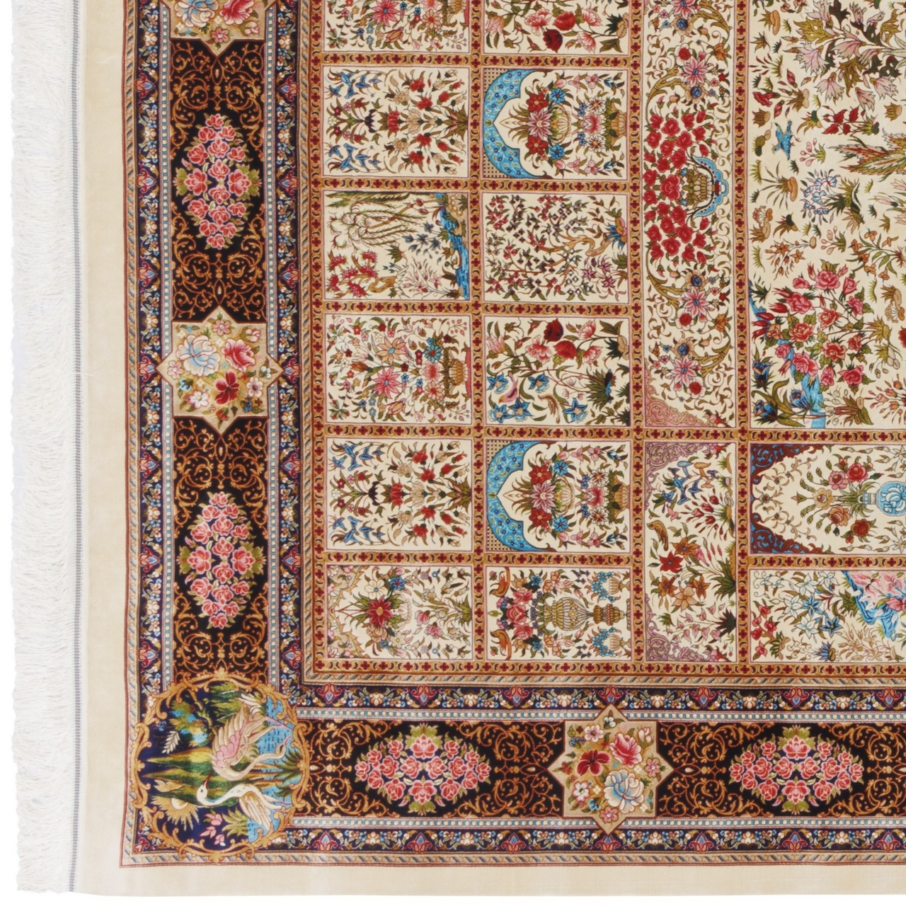 Machine-made Rug, Floral Framed, Acrylic + Bamboo Silk, Persian Style, Ref 200233
