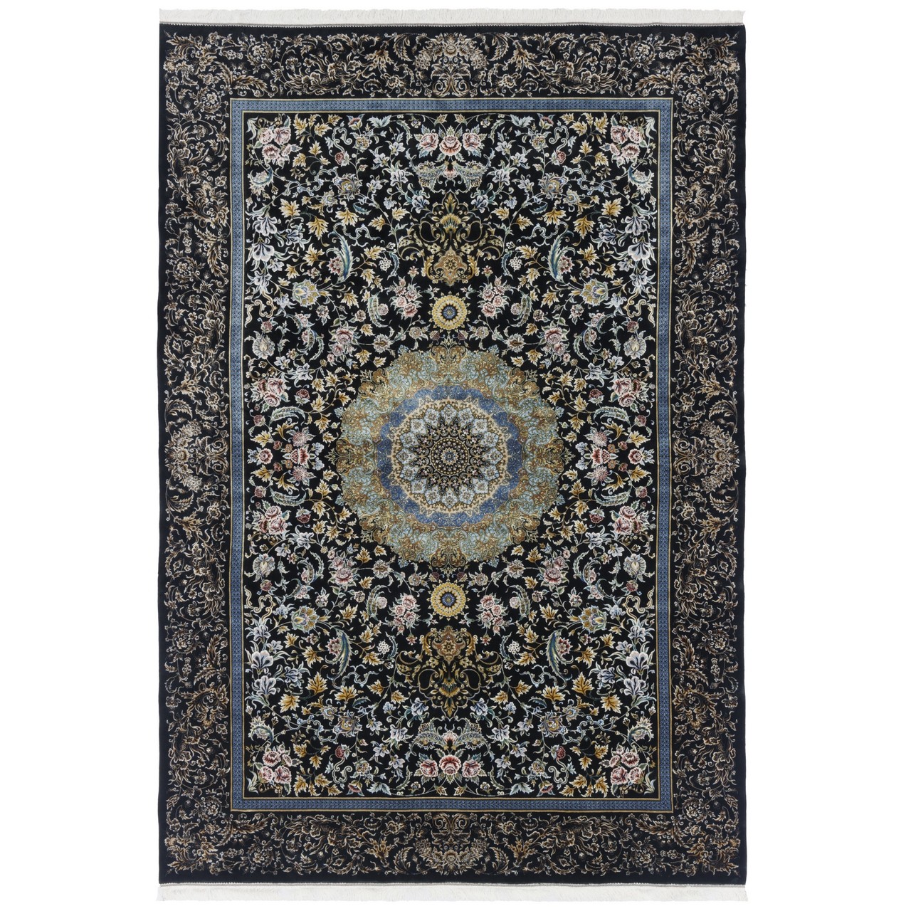 Machine-made Rug, Floral Medallion, Acrylic + Bamboo Silk, Persian Style, Ref 200195