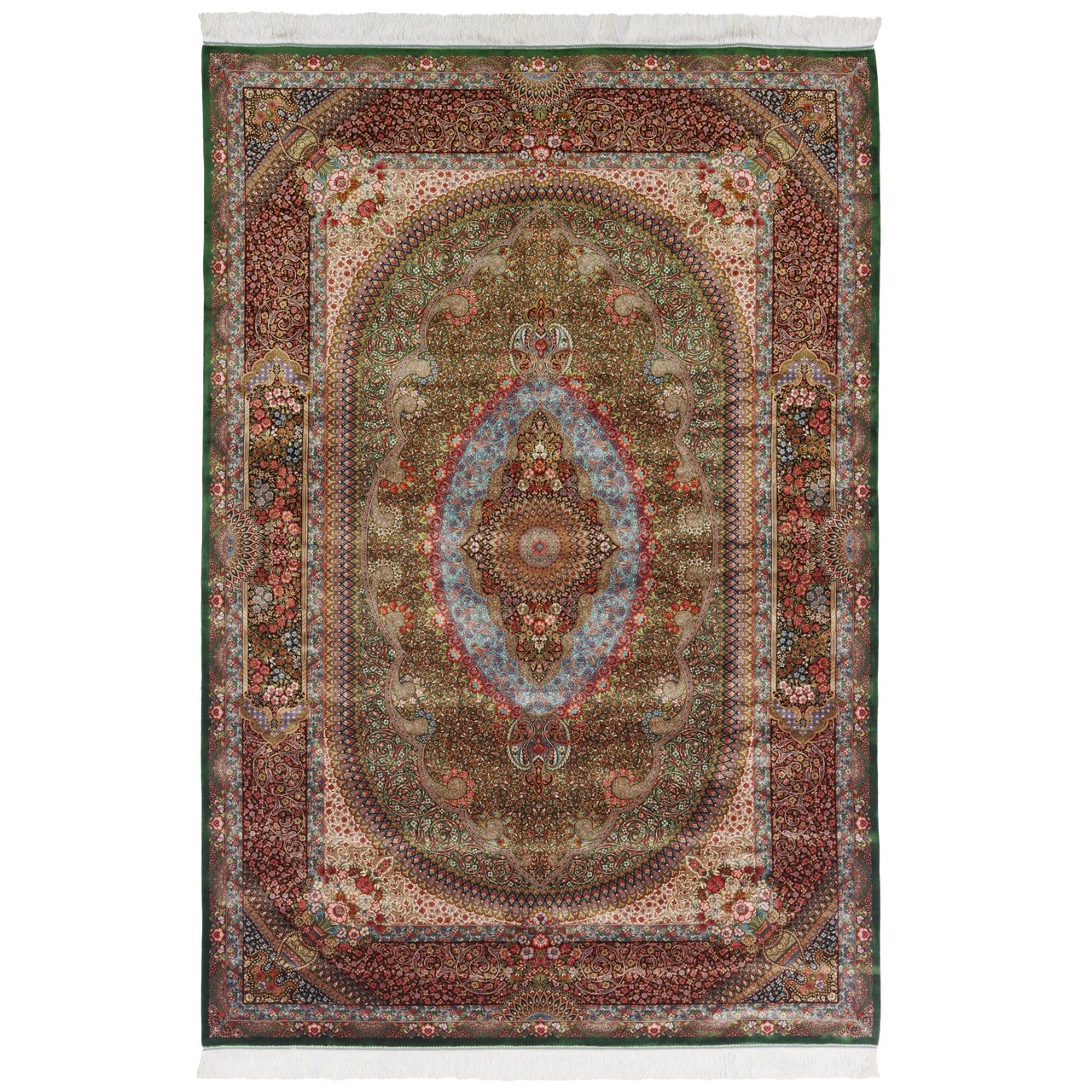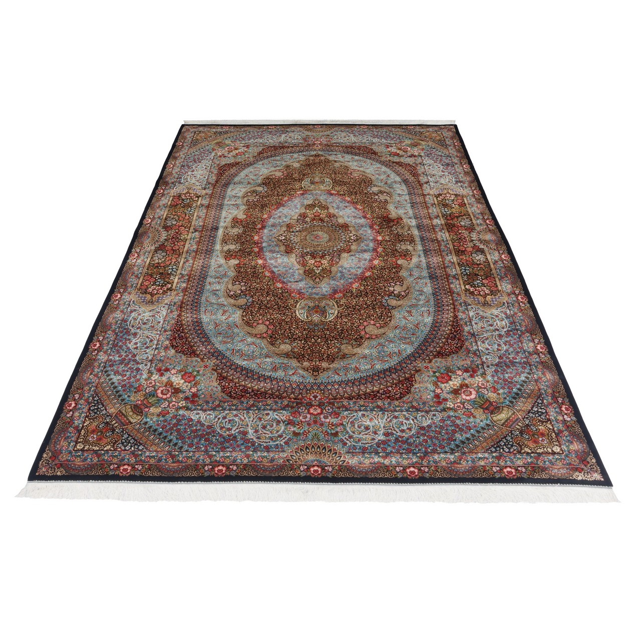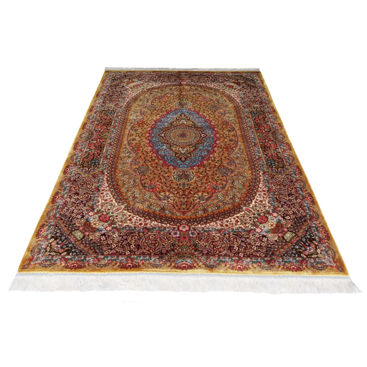 Machine-made Rug, Floral Medallion, Acrylic + Bamboo Silk, Persian Style, Ref 200218
