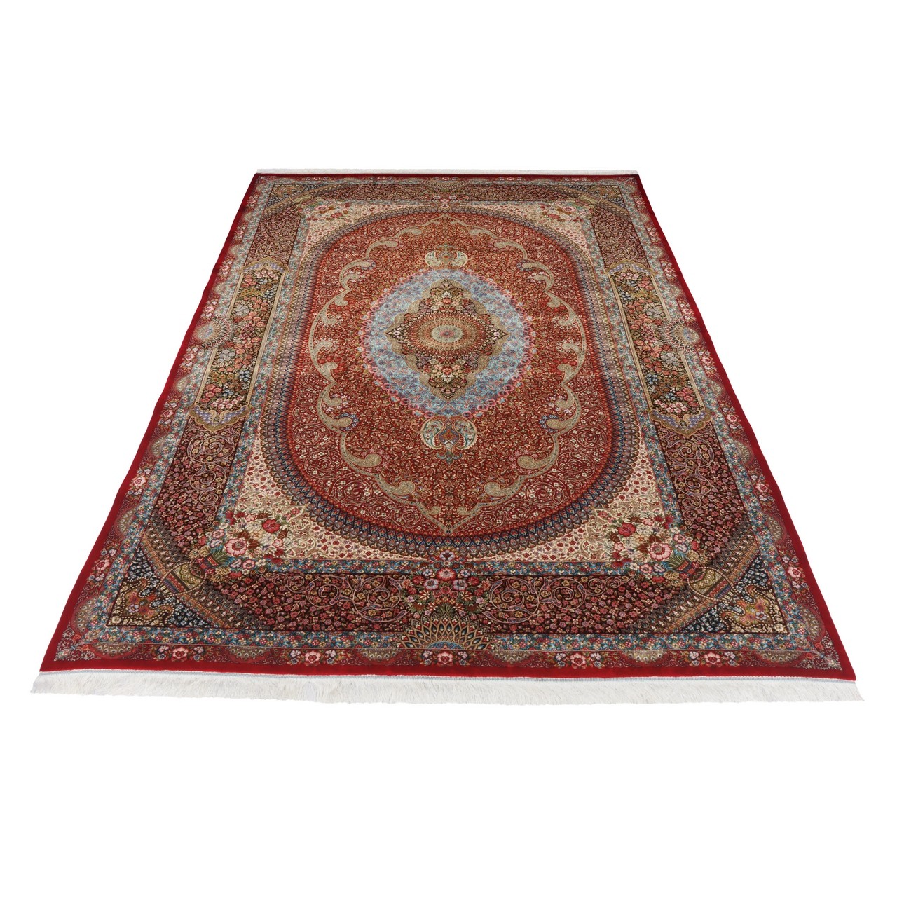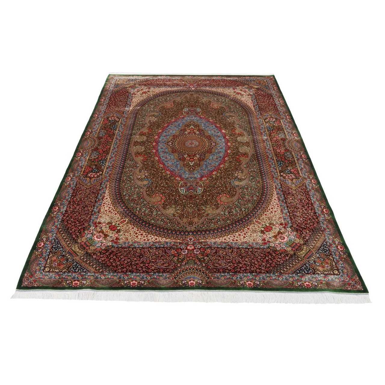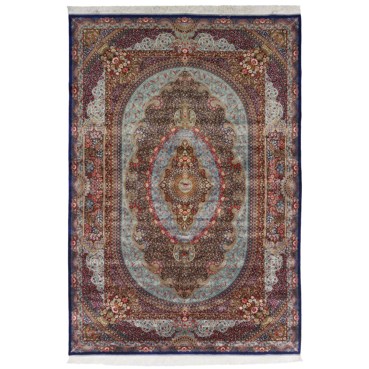 Machine-made Rug, Floral Medallion, Acrylic + Bamboo Silk, Persian Style, Ref 200218