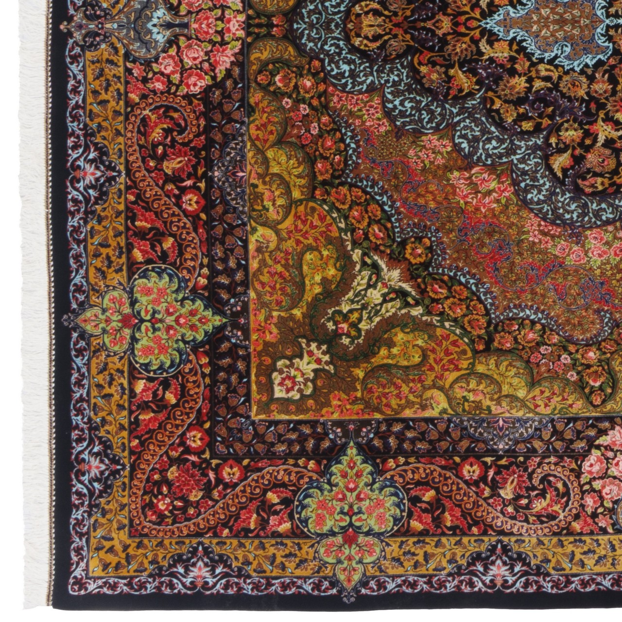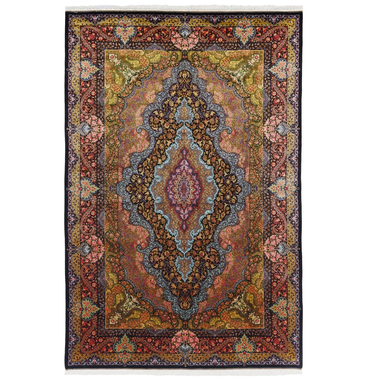 Machine-made Rug, Neoclassic Corner Medallion, Acrylic + Bamboo Silk, Persian Style, Ref 200224