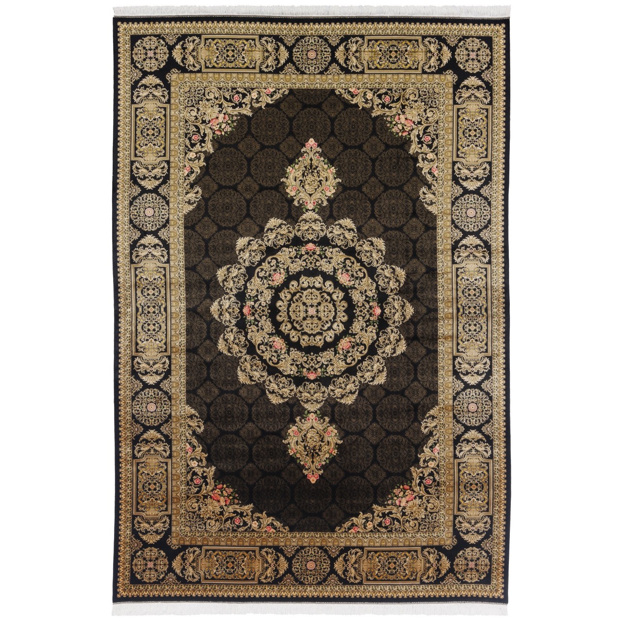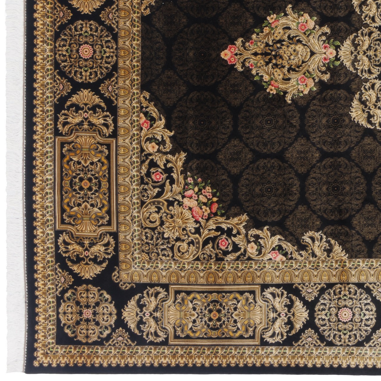 Machine-made Rug, Neoclassic Corner Medallion, Bamboo Silk, Persian Style, Ref 800219