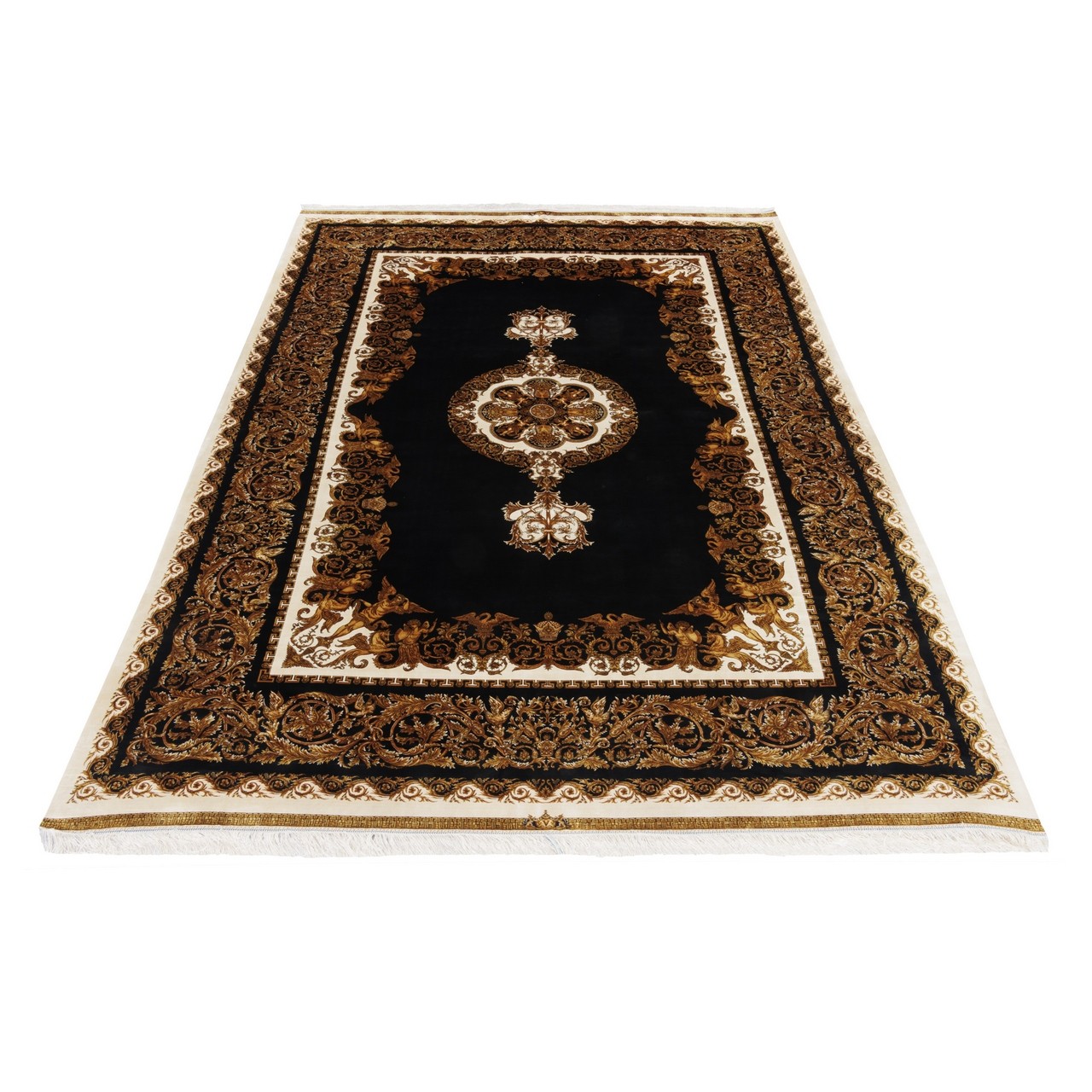 Machine-made Rug, Neoclassic Medallion, Acrylic + Bamboo Silk, Persian Style, Ref 200207