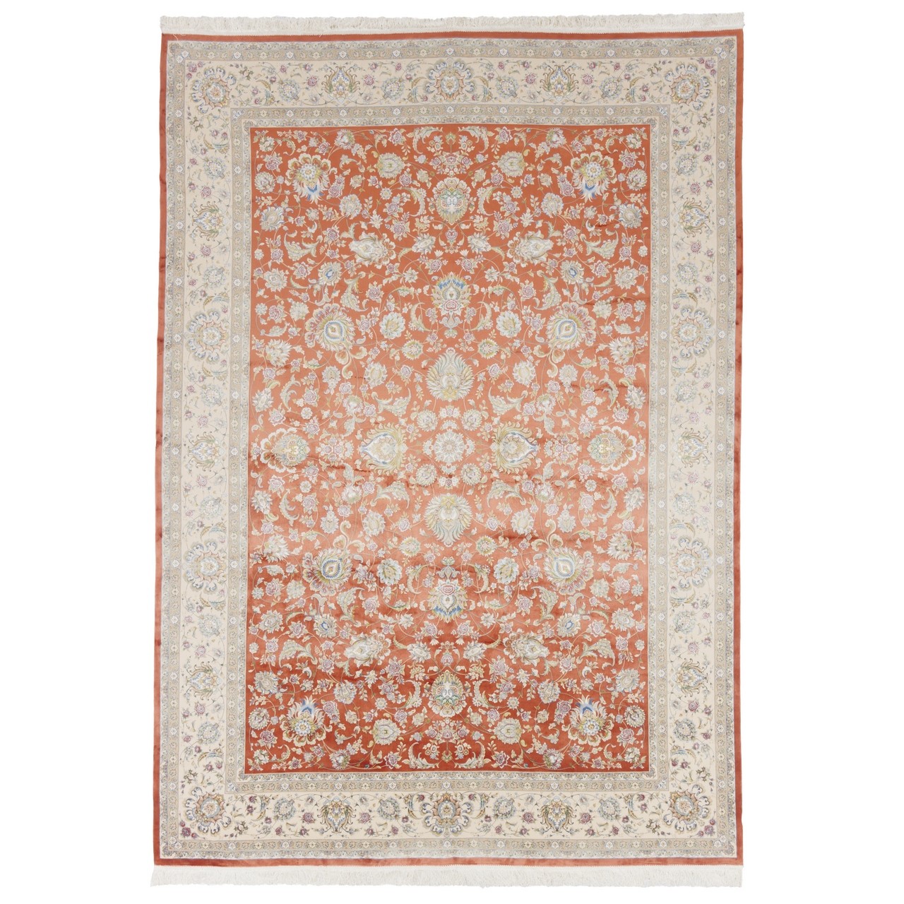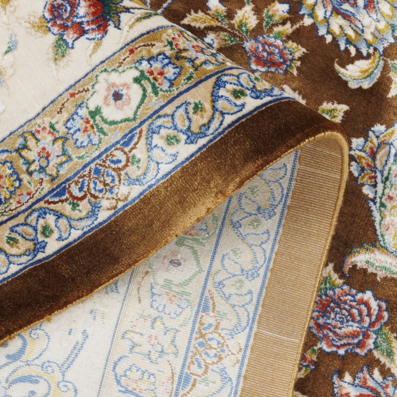 Machine-made Rug, Shah Abbasi All-over Floral, Acrylic + Bamboo Silk, Persian Style, Ref 200176