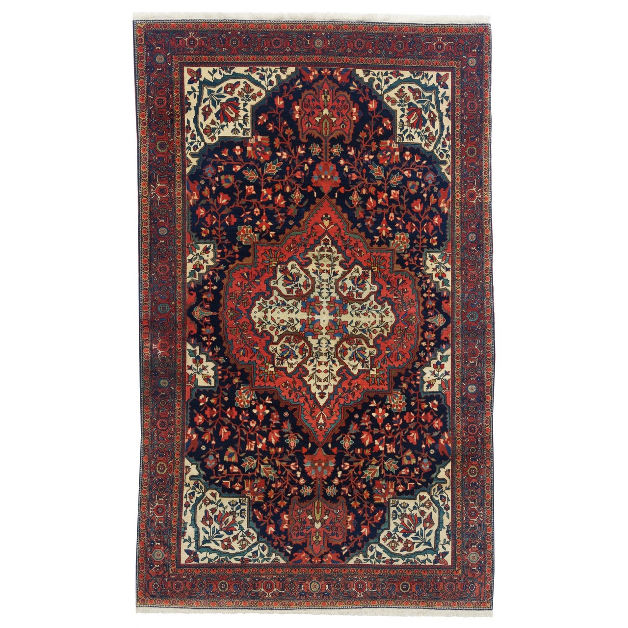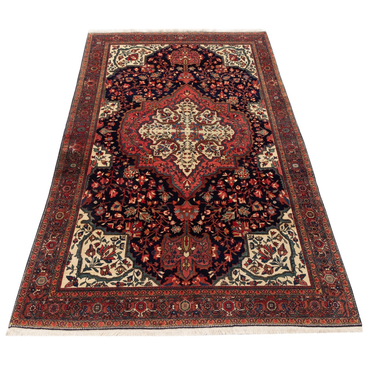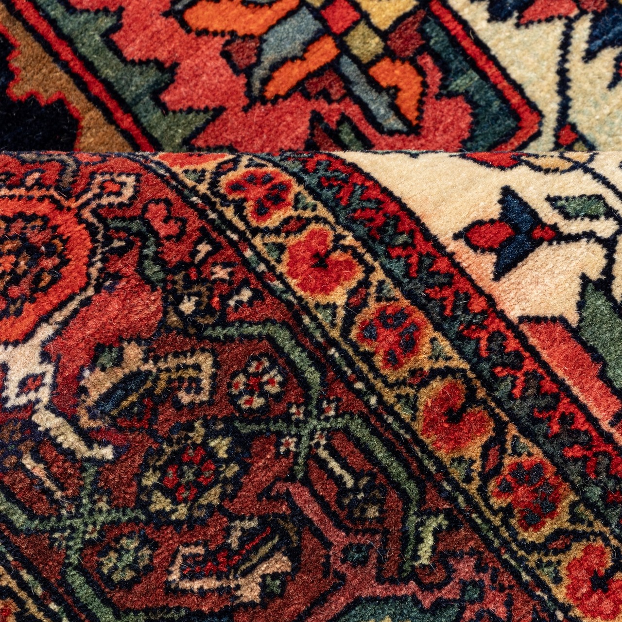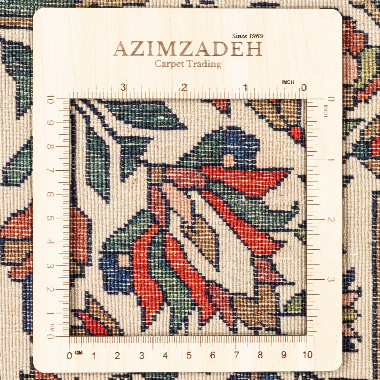 این فرش آنتیک فراهان، شاهکاری کمنظیر از دل سرزمین هنر و اصالت ایرانی است که با طرح کلاسیک لچک ترنج و نقش دلنشین گلدار، زیبایی و وقار منحصربهفردی را در خود جای داده است. منطقه فراهان که از قدیم در خلق فرشهایی با نقوش اصیل و ظریف شهرت دارد، اثری آفریده که هنر دستان استادکاران خبره و بافندگان زبردستش را به زیبایی تمام بازتاب میدهد. در متن این فرش نفیس، طرح ماندگار لچک ترنج بهصورتی استادانه اجرا شده است؛ طرحی که یادآور باغهای بهشتی ایرانی است و از گذشته تا امروز نمادی از اصالت و شکوه فرهنگ سرزمین پارس بوده است. رنگ زمینه سرمهای عمیق آن، حالتی باشکوه و در عین حال گرم و گیرا به فرش بخشیده و در کنار حاشیهای به رنگ عنابی، هماهنگی هنرمندانهای ایجاد کرده است که فضای پیرامون خود را به جلوهای چشمنواز و استثنایی مزین میسازد. این فرش دستباف، از بهترین پشم مرغوب و لطیف تهیه شده که بر روی چلهای از نخ مقاوم و ظریف بافته شده است. تراکم و ریزبافتی با تعداد ۴۵ رج در این فرش نشان از ظرافت بالا، دقت بسیار و ارزش هنری ویژه آن دارد و همین خصوصیت باعث شده هر گل و نقشی در این اثر، بهوضوح و با زیبایی خاصی دیده شود. ابعاد ۱۲۵ × ۲۰۷ سانتیمتری این اثر و مساحت ۲.۵۹ مترمربعی آن، گزینهای بینظیر برای فضاهای مجلل و باشکوه است؛ فضایی که قرار است به واسطه حضور این فرش فراهانی، جلوهای خاص و اصیل به خود بگیرد.