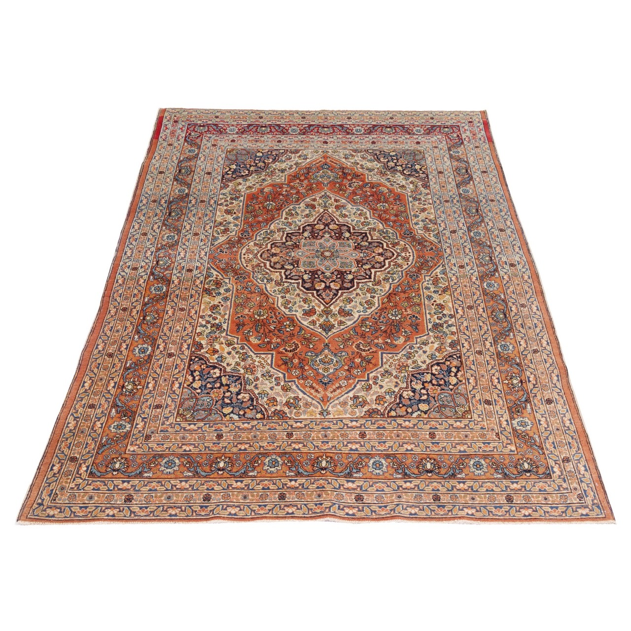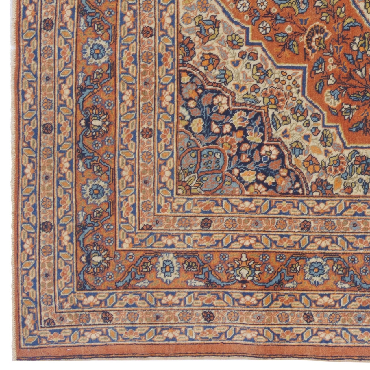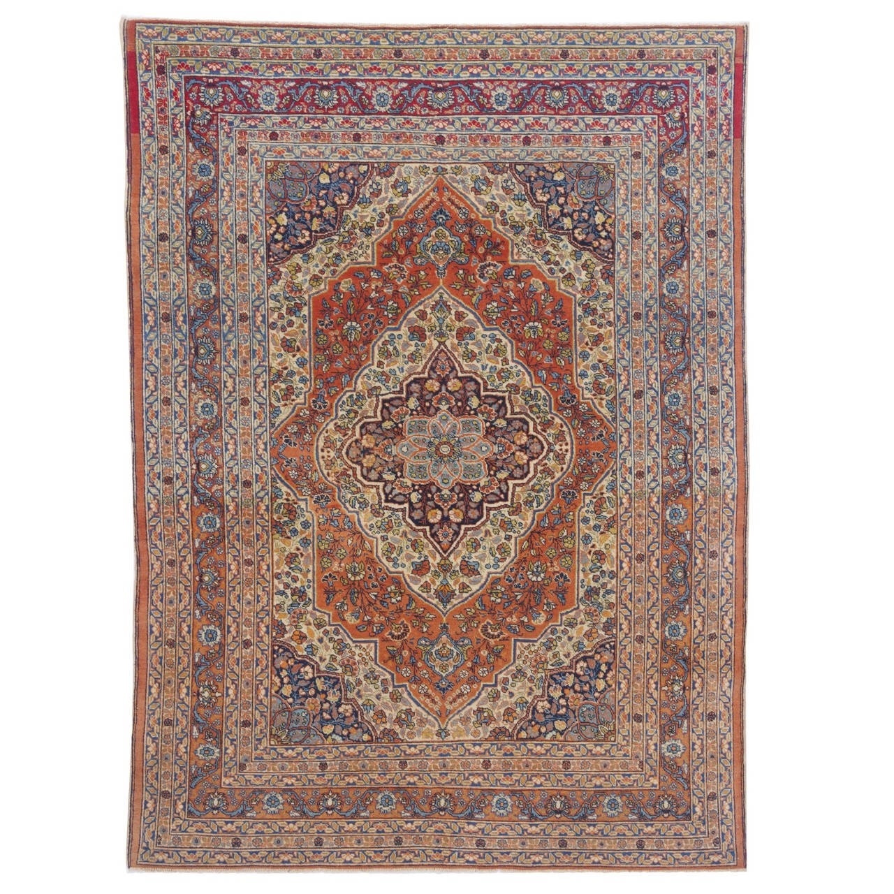 فرشهای تبریز در میان آثار فاخر هنر ایرانی، همواره جایگاهی متمایز داشتهاند. این اثر آنتیک توسط استاد «حاج جلیلی»، از نامآوران هنر قالیبافی تبریز خلق شده است و با طرح لچک ترنج، نمونهای برجسته از شکوه هنر قالیبافی تبریز است. طرح لچک ترنج، ریشه در نگرش کیهانی، معماری ایرانی و مفهوم وحدت در کثرت دارد. این فرش آنتیک با ابعاد ۱۲۷ × ۱۷۵ سانتیمتر و مساحت 2.23، در کارگاههای هنری تبریز و با دستان توانای بافندگانی خلق شده که میراثدار قرنها ذوق و مهارتاند. بهرهگیری از پشم لطیف با چلهای از نخ پنبهای، آن را به فرشی ماندگار با بافتی گرم و دلنشین بدل کرده است. رجشمار ۴۰ نشان از ظرافتی متعادل دارد که هم دوام را تضمین میکند و هم زیبایی طرح را بهخوبی نمایان میسازد. طرح لچک ترنج، با مرکزیتی پر از نقش گلهای اساطیری و زوایایی که با طراوتی خیالانگیز طراحی شدهاند، جلوهای از تعادل و هماهنگی در طبیعت را یادآور میشود. رنگ مسیِ زمینه و حاشیه، گرمایی اصیل به فضای آن بخشیده و اثری پدید آورده که در عین قدمت، همچنان زنده و الهامبخش است. این فرش نه تنها یک زیرانداز نیست، بلکه تکهای از تاریخ است؛ که در سکوت خود، قصهای از زیبایی، صبر و عشق به هنر را بازگو میکند. برای آنان که به دنبال پیوند اصالت با ظرافتاند، این اثر انتخابی بیبدیل است.