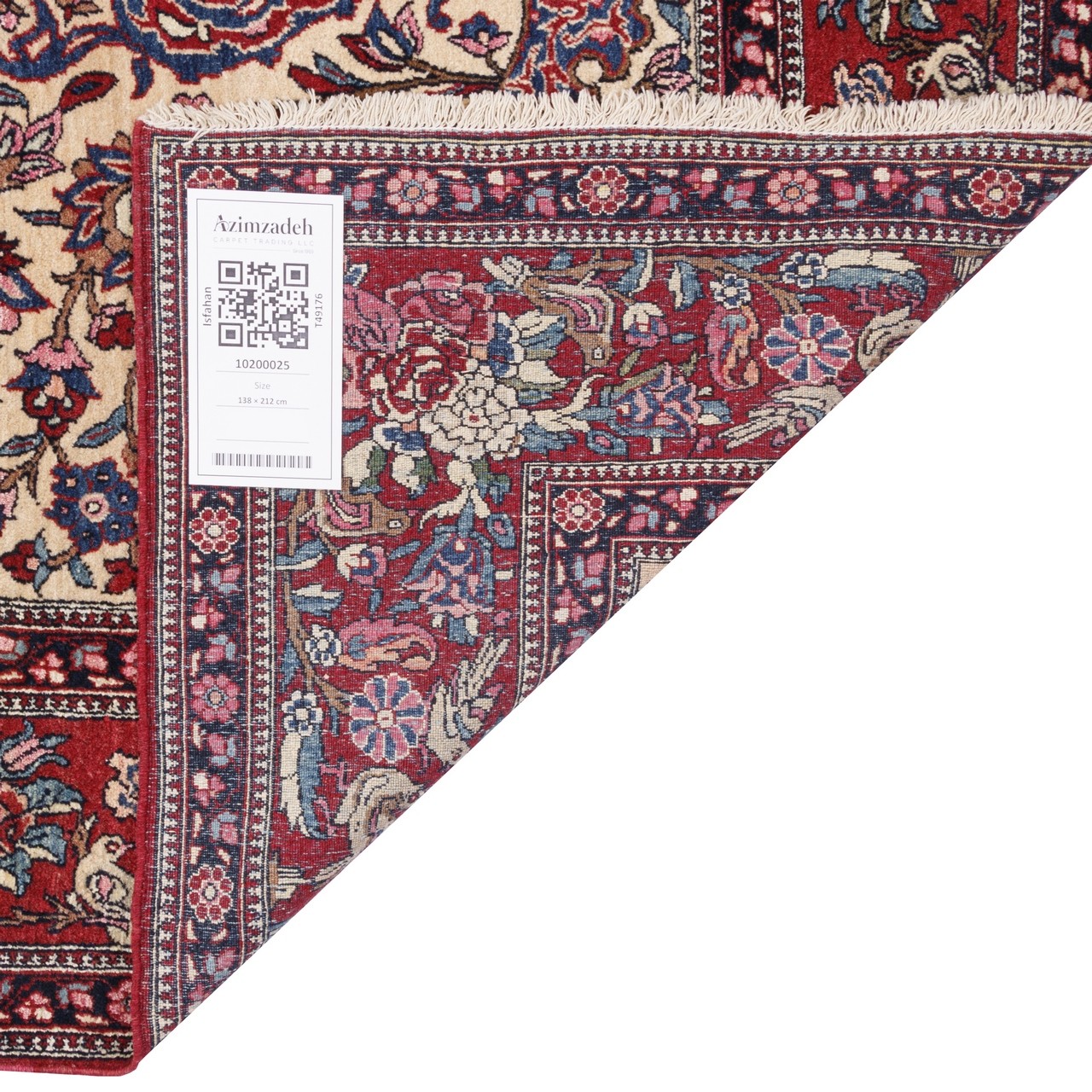 این فرش آنتیک و مسحورکننده از شهر اصفهان است. اثری که در هر گره آن، ردی از ظرافت دست هنرمندان و در هر رنگ آن، بازتابی از طبیعت شاعرانه ایران زمین دیده میشود. این فرش دستباف گلدانی با طرحی اصیل و باشکوه، گلهایی ابریشمی را در گلدانهایی خیالانگیز به تصویر کشیده که گویی از دل بهار برخاستهاند و بر بستری کرمرنگ آرام گرفتهاند. در اندازهی ۱۳۸ × ۲۱۲ سانتیمتر با مساحت 2.93 مترمربع و رجشمار ۵۰، این اثر زیبا در مرز میان ظرافت و استواری ایستاده است؛ چنانکه هر گل و برگ آن با جزئیاتی دقیق و استادانه خلق شده و نمایانگر تبحر بافندگان اصفهانی در ترکیب نقوش سنتی با رنگپردازی هنرمندانه است. دوره صفوی مبدأ پیدایش طرح گلدانی در فرش ایرانی است. فرشهای گلدانی صفوی عمدتاً برای وقف به اماکن مقدس یا تزئین کاخها بافته میشدند. نمونههای برجستهای از این طرح، همچنان در موزههای متروپولیتن نیویورک و موزه فرش ایران نگهداری میشود. جنس گلها از ابریشم است، با چلهای از نخ، که جلوهای درخشان و ابعاد بصری بیشتری به طرح بخشیدهاند. درخشندگی طبیعی ابریشم، در کنار رنگهای گرم حاشیهی لاکی، ترکیبی کمنظیر از شکوه و لطافت میآفریند که چشم را در اولین نگاه میرباید. نقش گلدانی با گلهای فراوان، نمادیست از برکت، زندگی و پیوستگی طبیعت با روح ایرانی؛ فرشی که نهفقط زینتبخش فضاست، بلکه خود روایتگریست از زیبایی، سنت و شکوه جاودان هنر اصفهان. انتخابی شکوهمند برای هر خانهای که در آن فرهنگ و اصالت جایگاهی ویژه دارد.