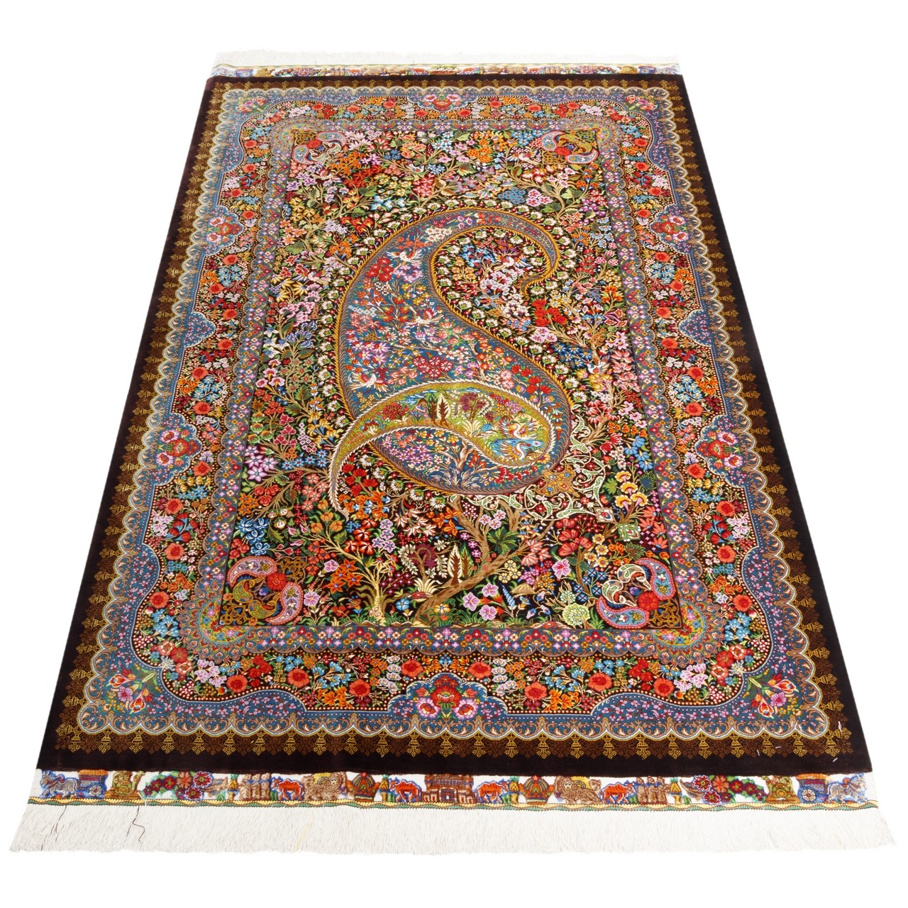فرش دستباف طرح سراسر تمام ابریشم قم 100 × 150 کد 10100195