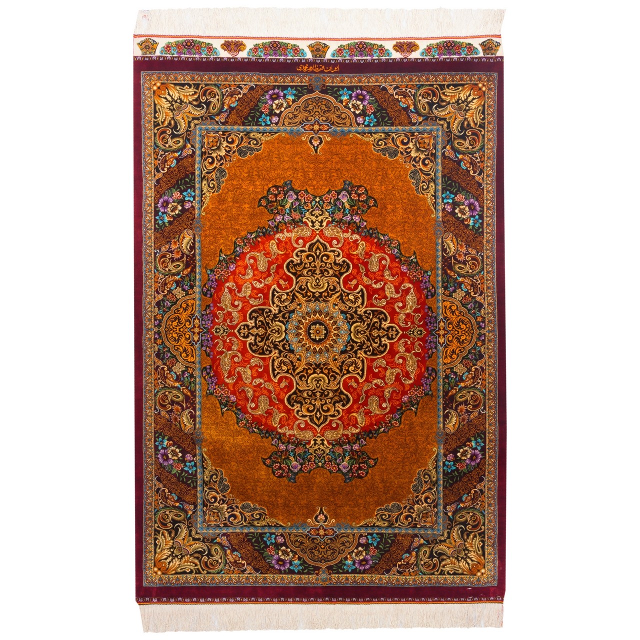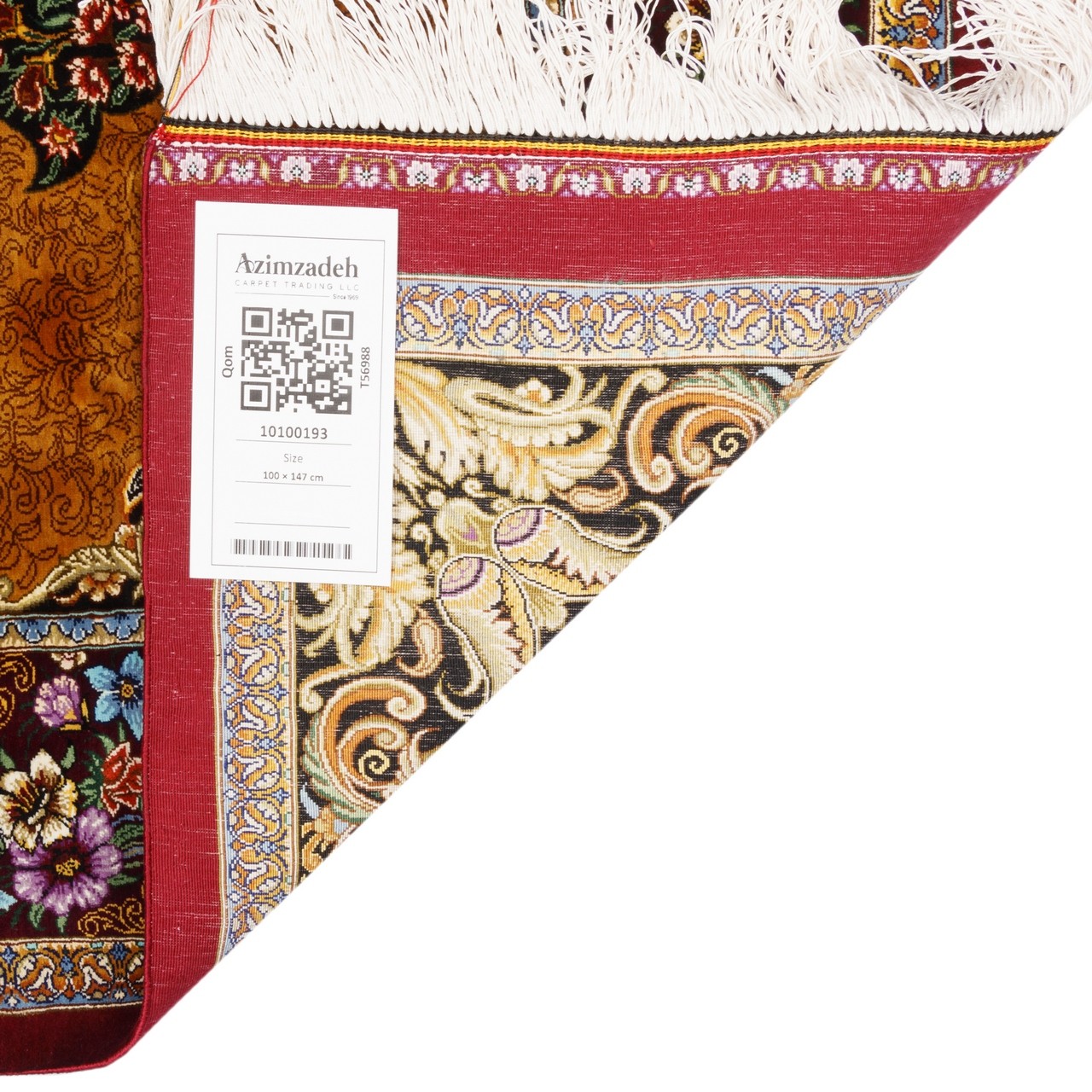 فرش دستباف طرح لچک ترنج تمام ابریشم قم 100 × 147 کد 10100193