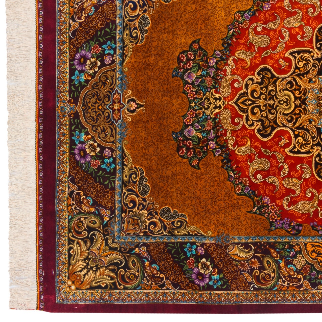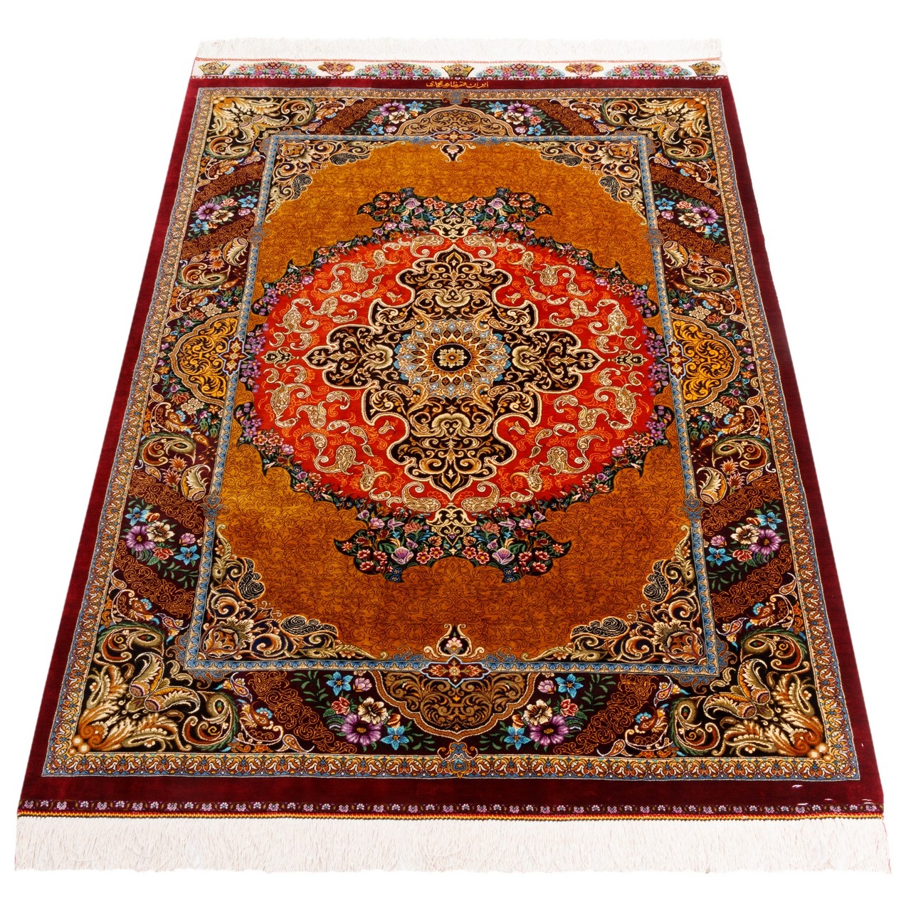 Handwoven Carpet Corner Medallion Layout All Silk Qom 100 × 147 cm Ref 10100193 Handwoven Carpet