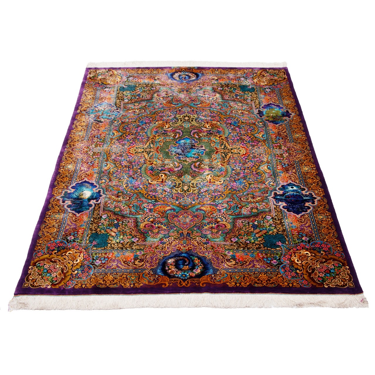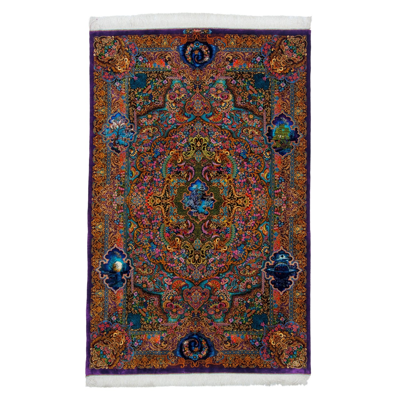 فرش دستباف طرح لچک ترنج تمام ابریشم قم 137 × 210 کد 10200410