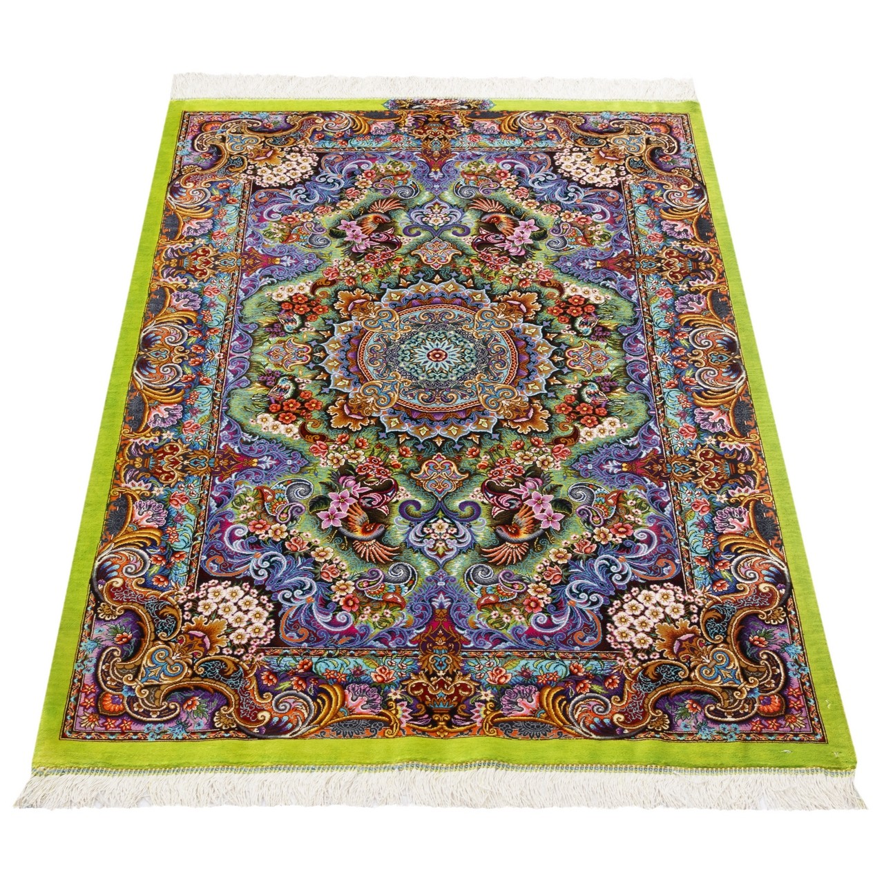 Handwoven Carpet Corner Medallion Layout All Silk Qom 80 × 120 cm Ref 10000232 Handwoven Carpet