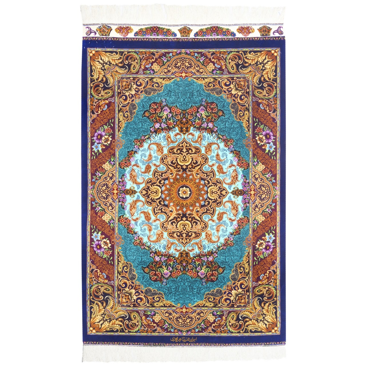 این فرش دستبافت قم با طرح اصیل لچک ترنج و رجشمار ۷۰، نمادی‌ست از دقت بی‌نهایت که تنها از دستان هنرمندان چیره‌دست قم برمی‌آید. فرش با اندازه‌ی ۱۲۰ × ۸۰ سانتی‌متر و مساحت ۰.۹۶ متر مربع، در دسته‌ی فرش‌های تمام ابریشم قرار می‌گیرد؛ فرش با برند «طاهر محمدی» با طرح لچک ترنج با گل‌های شکفته و نقوش بته‌جقه، با تکرارهای منظم و ترکیب‌بندی دقیق، جلوه‌ای از هارمونی طبیعت و هندسه ایرانی را بر بستر این فرش نمایان کرده است. رنگ زمینه‌ی فیروزه‌ای، حسی از طراوت، آرامش و اصالت را در فضای بصری فرش جاری کرده و در کنار حاشیه‌ی سرمه‌ای تیره و فاخر، این تقابل رنگی، چشمان بیننده را به تعادل و شکوه دعوت می‌کند.